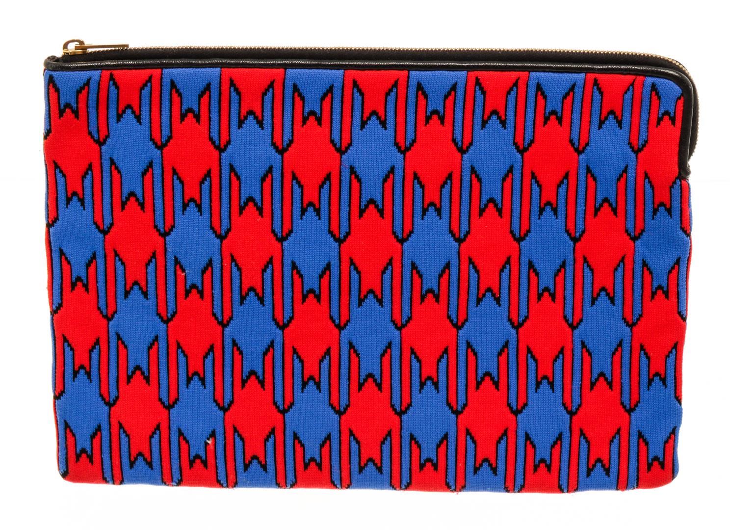 Celine Blue, Multicolor, Red Fabic Houndstooth Zip Pouch
