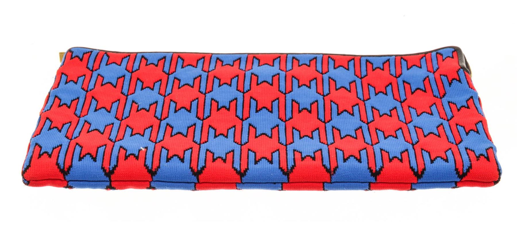 Celine Blue, Multicolor, Red Fabic Houndstooth Zip Pouch
