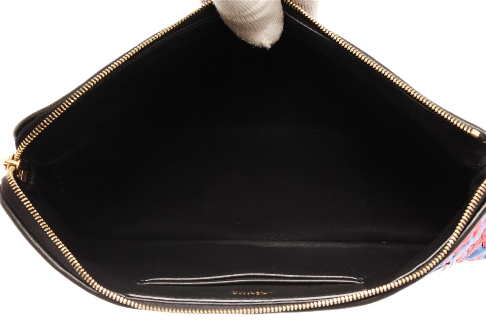 One Celine Blue, Multicolor, Red Fabic Houndstooth Zip Pouch. Item is sold AS-IS. All available information is listed in the description and shown in the photo. celine blue, multicolor, red fabic houndstooth zip pouch with silver tone hardware, interior pocket, zip closure. Height: 21.09 cm (8.3 in), Width: 27.94 cm (11 in), Depth: 5.08 cm (2 in)