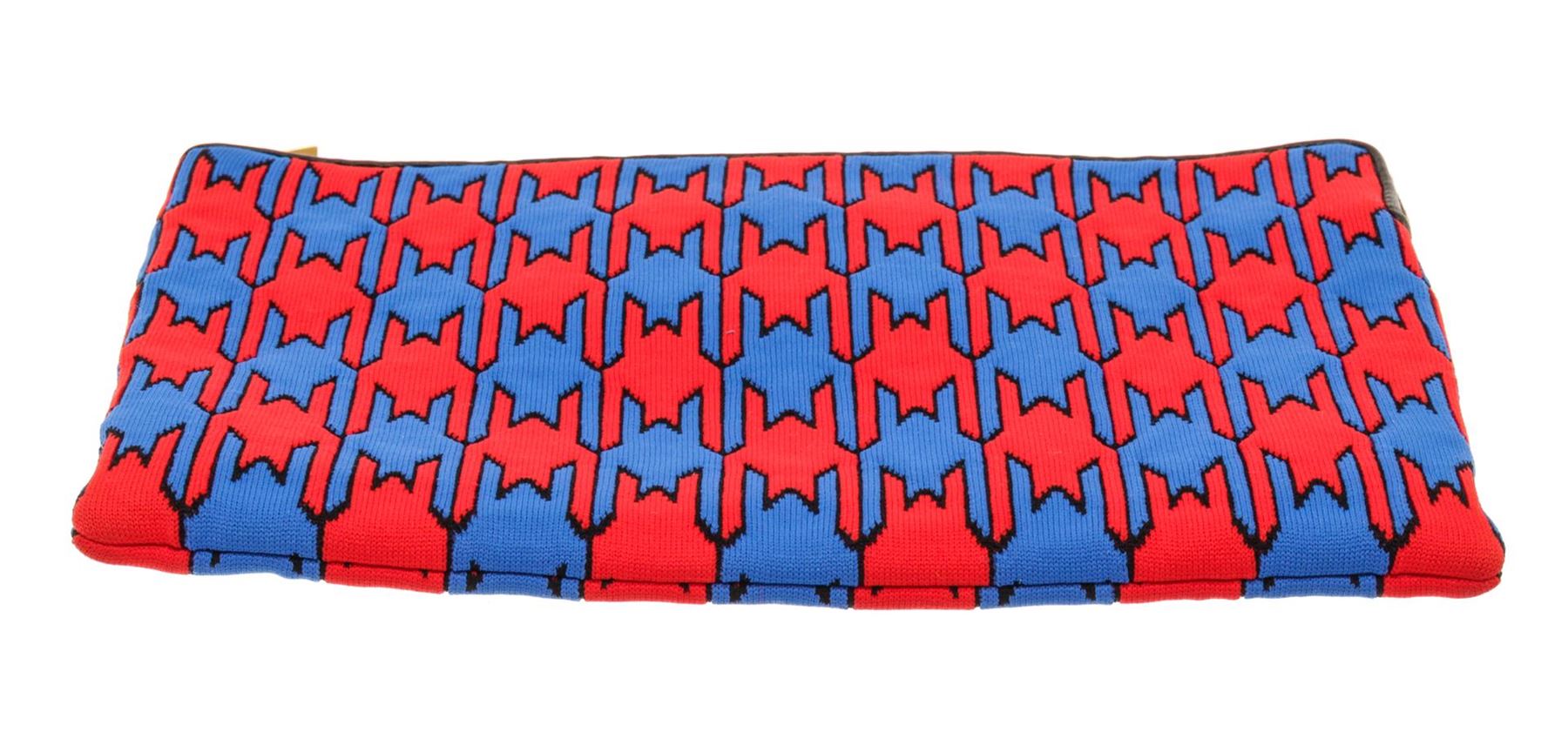 One Celine Blue, Multicolor, Red Fabic Zip Pouch Clutch. Item is sold AS-IS. All available information is listed in the description and shown in the photo. Celine Blue, Multicolor, Red Fabic Zip Pouch Houndstooth Clutch with Minor wear on exterior, scuffs and small indentations on leather trims and in interior. Scratches and slight tarnish on hardware. Height: 8.3 in (21.09 cm),Width: 11 in (27.94 cm),Depth: 2 in (5.08 cm)
