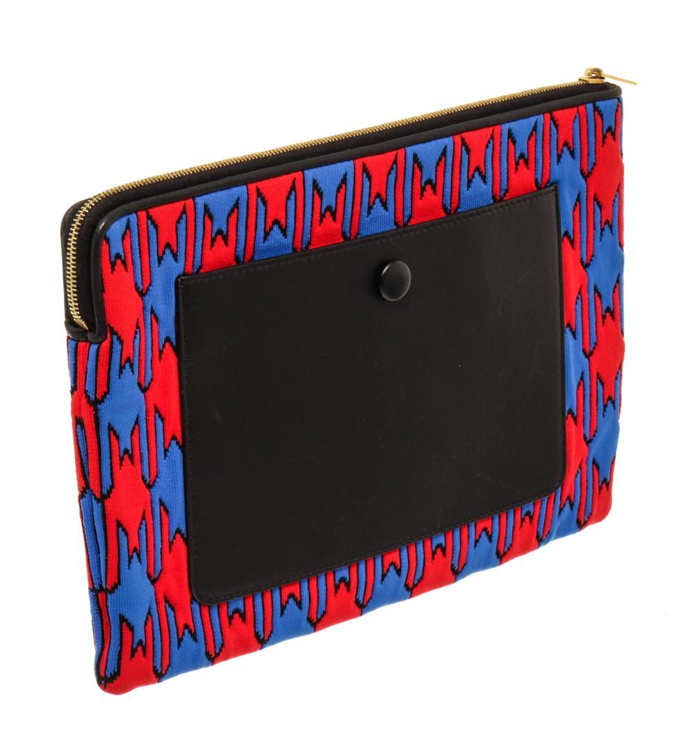 One Celine Blue, Multicolor, Red Fabic Zip Pouch Clutch. Item is sold AS-IS. All available information is listed in the description and shown in the photo. Celine Blue, Multicolor, Red Fabic Zip Pouch Houndstooth Clutch with Minor wear on exterior, scuffs and small indentations on leather trims and in interior. Scratches and slight tarnish on hardware. Height: 8.3 in (21.09 cm),Width: 11 in (27.94 cm),Depth: 2 in (5.08 cm)