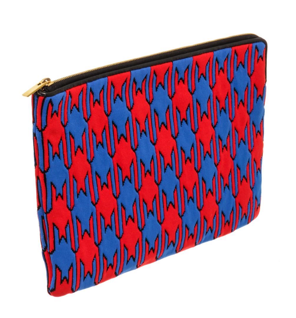 Celine Blue, Multicolor, Red Fabic Zip Pouch Clutch