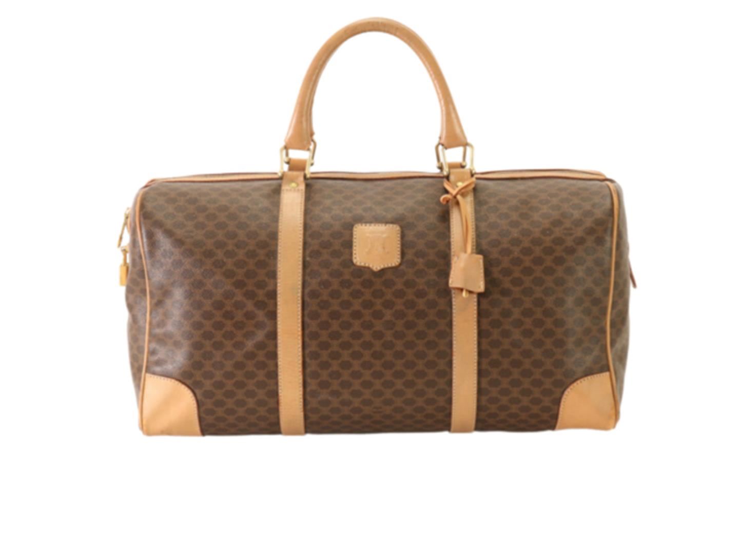 One Celine Boston Bag. Item is sold AS-IS. All available information is listed in the description and shown in the photo. Macadam Print Brown