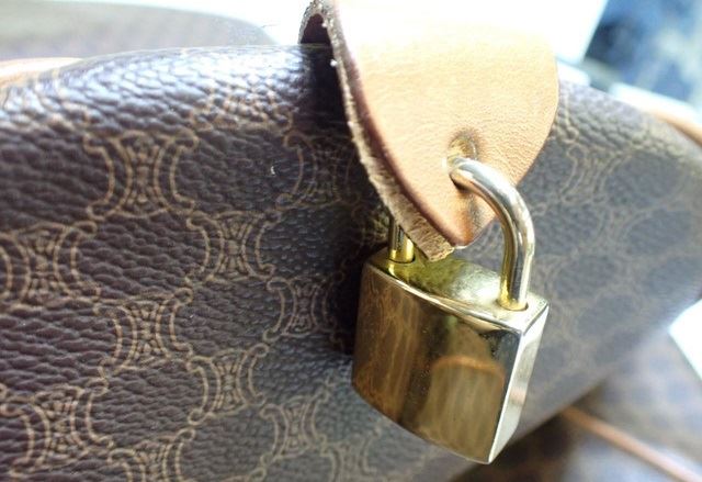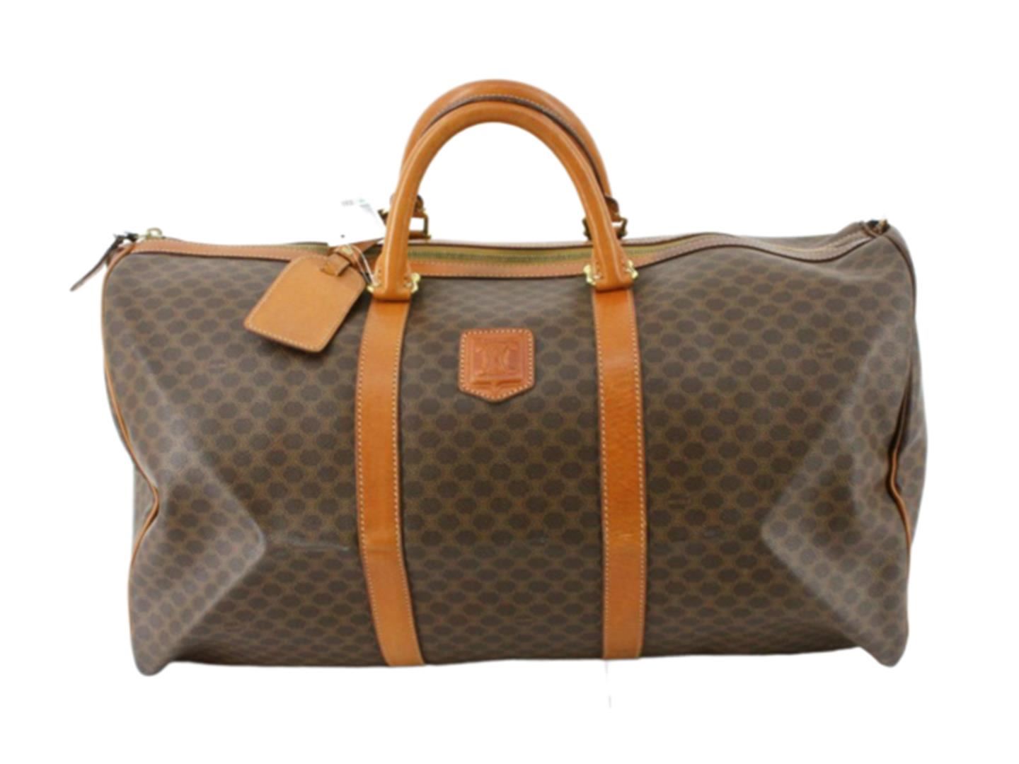 One Celine Boston Bag. Item is sold AS-IS. All available information is listed in the description and shown in the photo. Macadam Print Brown