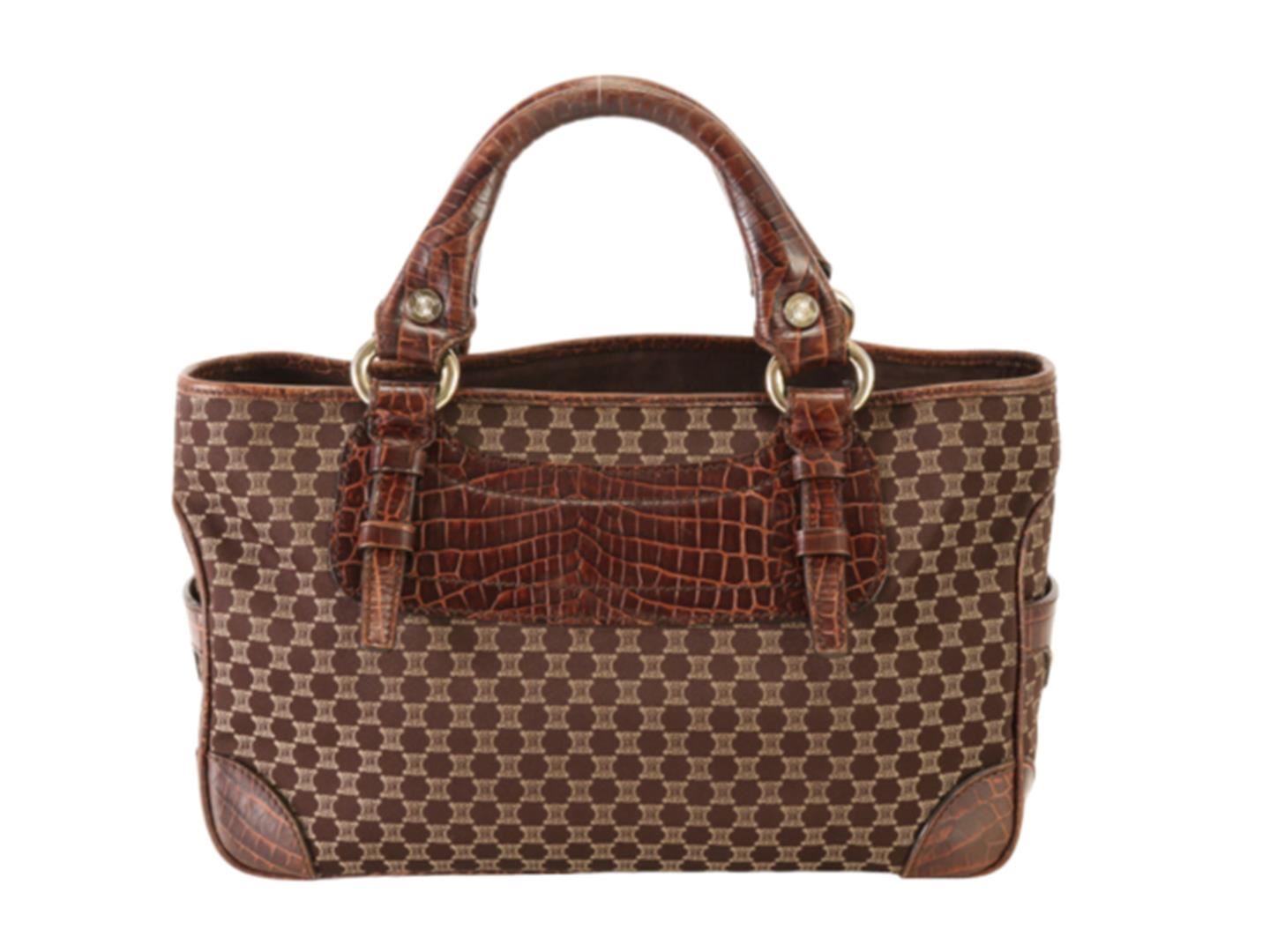 One Celine Brown Canvas & Snake Embossed Leather Boogie Bag. Item is sold AS-IS. All available information is listed in the description and shown in the photo. Macadam Croc