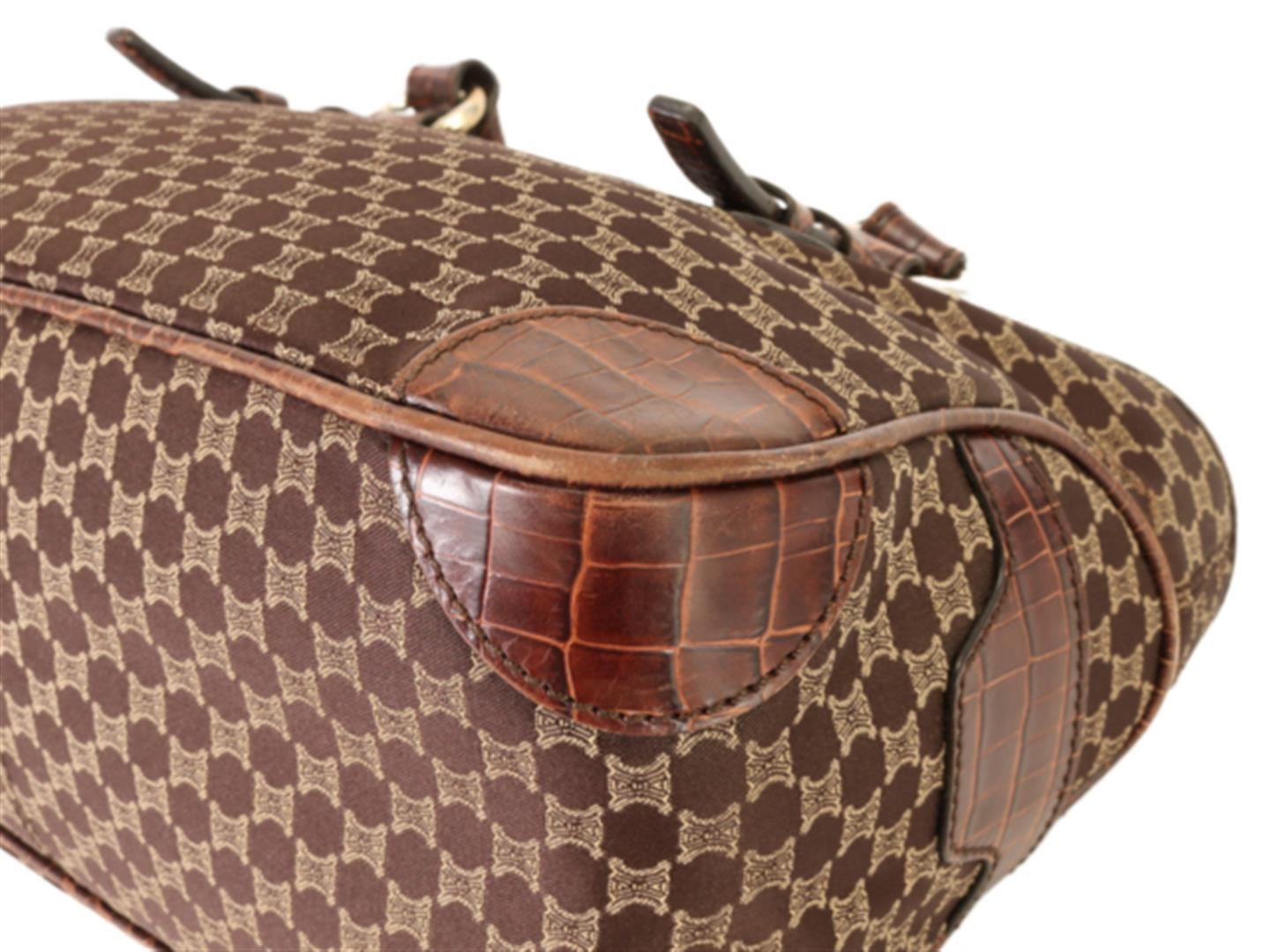 One Celine Brown Canvas & Snake Embossed Leather Boogie Bag. Item is sold AS-IS. All available information is listed in the description and shown in the photo. Macadam Croc