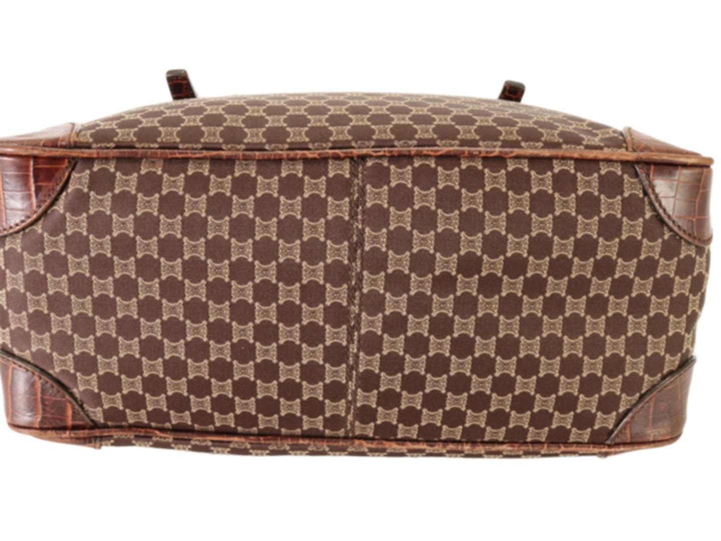 One Celine Brown Canvas & Snake Embossed Leather Boogie Bag. Item is sold AS-IS. All available information is listed in the description and shown in the photo. Macadam Croc