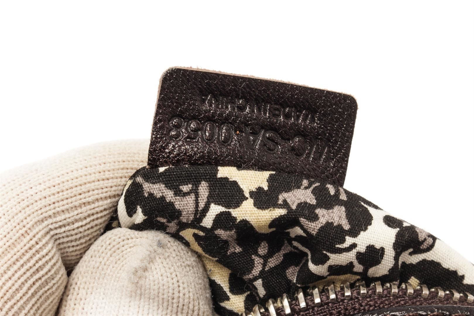 Celine Brown Denim Vintage Macadam Boogie Bag. All available information is listed in the description and shown in the photos. Celine Brown Denim Vintage Macadam Boogie Bag with printed, silver-tone hardware, rolled handles, leather trim embellishment, canvas lining & three interior pockets, open top Height: 7.75", Width: 13.75", Depth: 5.5" / 19.68 x 34.92 x 13.97 CM