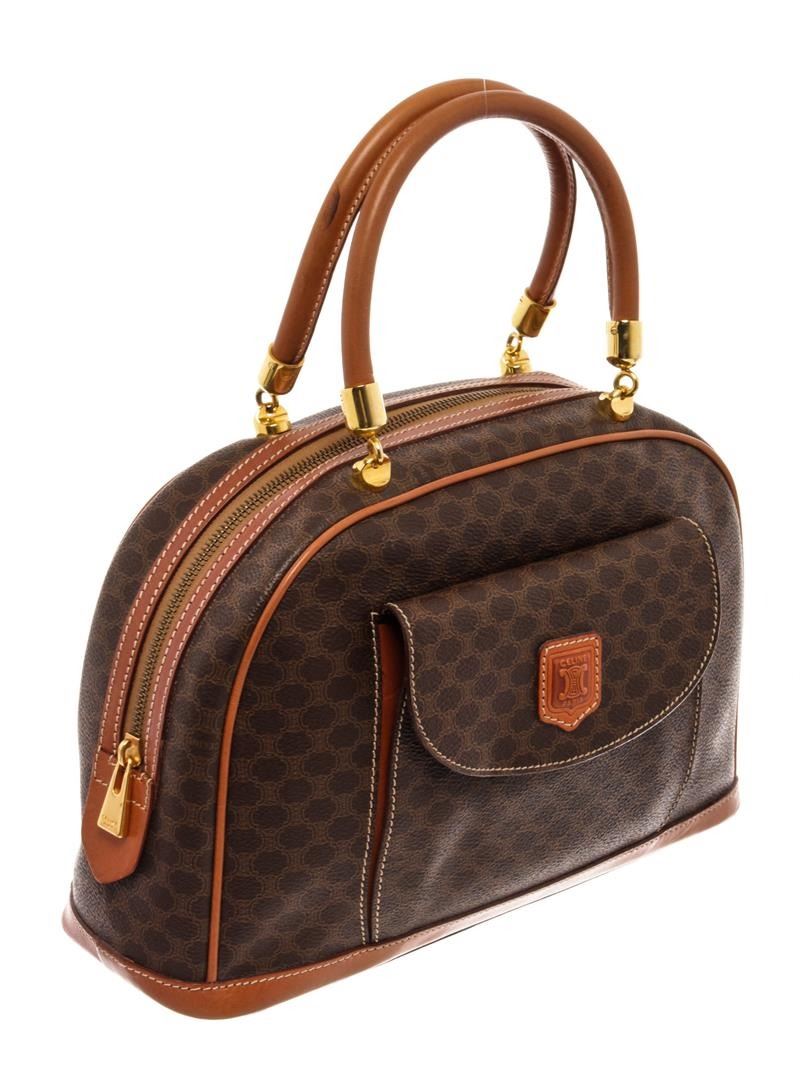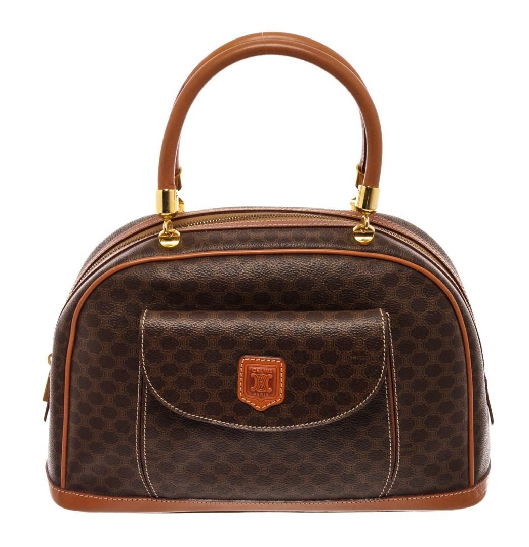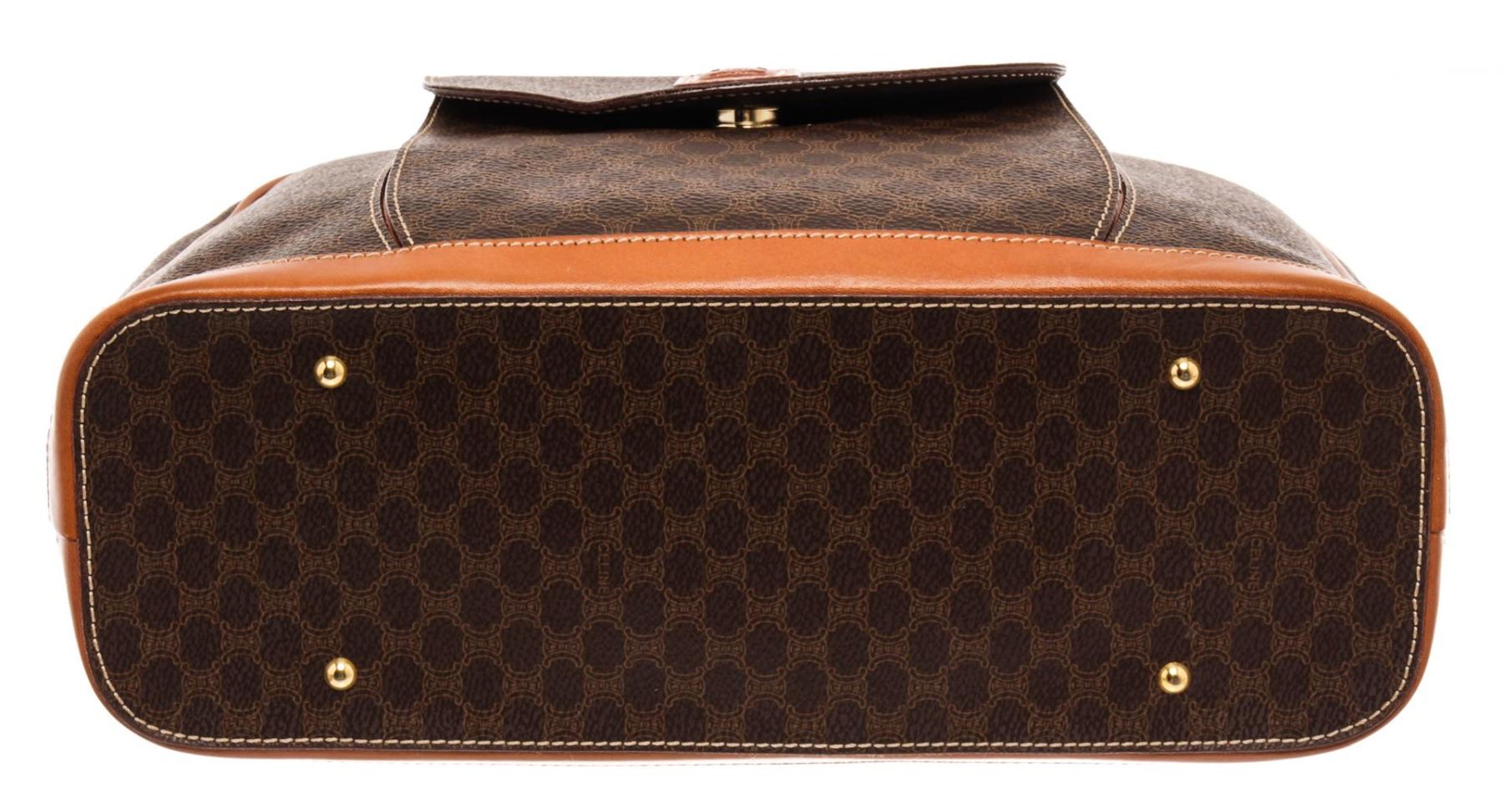 Celine Brown Fabric Leather Macadam Handbag. All available information is listed in the description and shown in the photos. Celine Brown Fabric Leather Macadam Handbag with gold-tone hardware, brown, PVC & Leather, Exterior pocket, one flap Interior pocket, one zipper pocket, zip closure. Height : 8" (20.5 cm) Width : 11.7" (30 cm) Depth : 4.29" (11 cm)