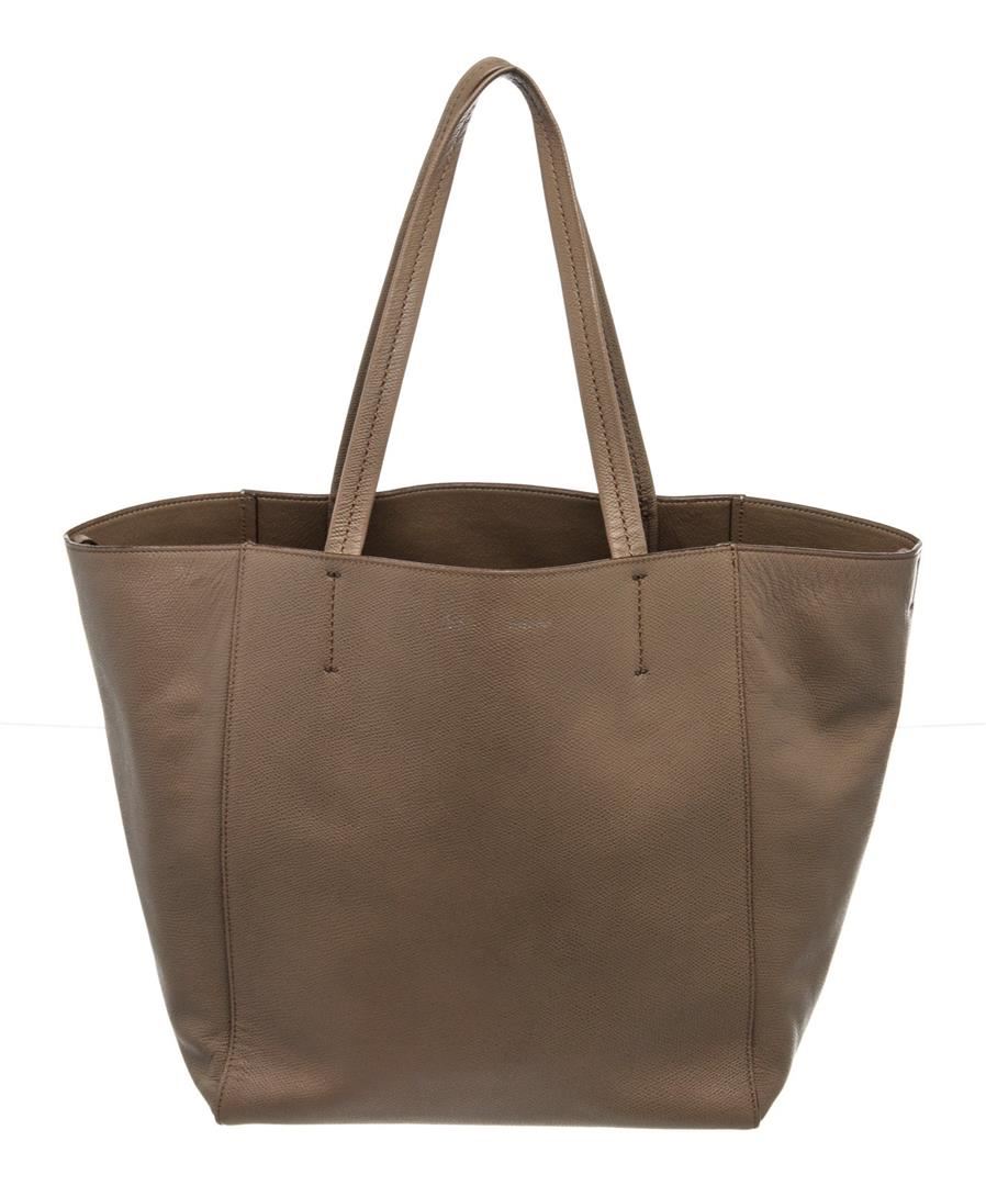 One Celine Brown Leather Phantom Cabas Shoulder Bag. Item is sold AS-IS. All available information is listed in the description and shown in the photo. Celine Brown Leather Phantom Cabas Shoulder Bag with leather, gold-tone hardware, trim leather, interior slip zip pocket, shoulder strap and flap closure.