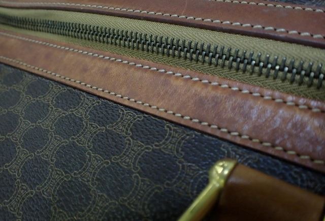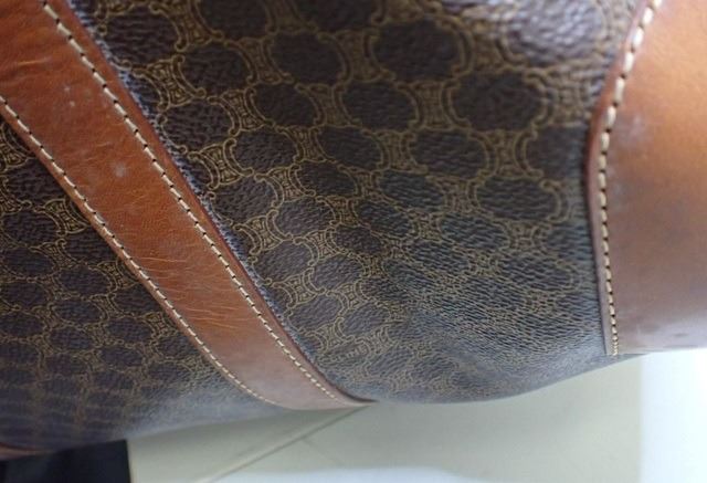 One Celine Brown Macadam Coated Canvas Leather Vintage Duffle Bag. Item is sold AS-IS. All available information is listed in the description and shown in the photo. Macadam