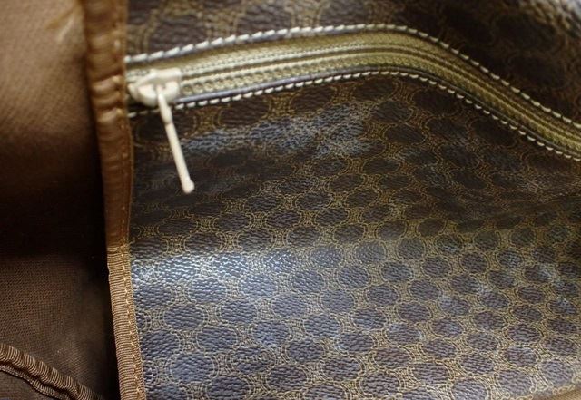 One Celine Brown Macadam Coated Canvas Leather Vintage Duffle Bag. Item is sold AS-IS. All available information is listed in the description and shown in the photo. Macadam
