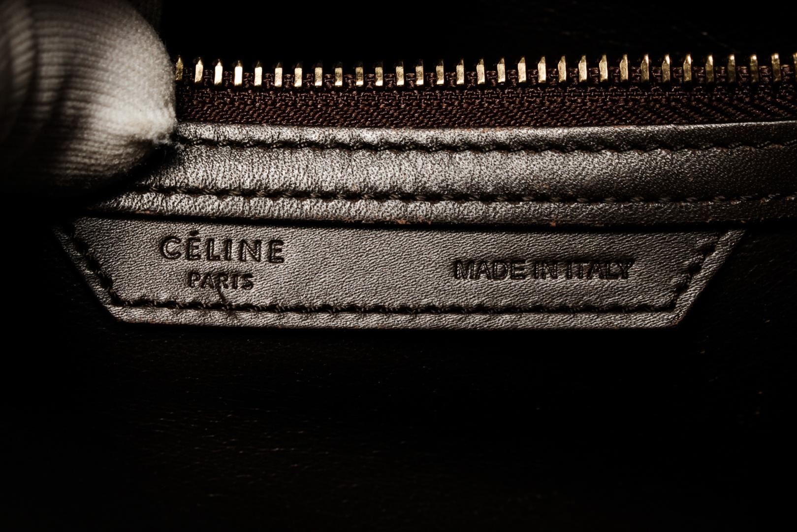 Celine Brown Multicolor Suede Leather Micro Luggage Handbag. All available information is listed in the description and shown in the photos. Celine Multicolor Mini Luggage with brown and ivory leather, brown suede, gold-tone hardware, dual rolled top handles, single zip pocket and foil-stamped logo at front face, protective feet at base, brown leather lining, three pockets at interior walls; one with zip closure and zip closure at top. Height 10", Width 10", Depth 5", Handle Drop 23"
