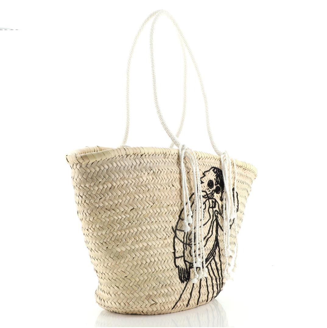 Celine Classic Panier Basket Tote Limited Edition David Kramer Sequin Embellished Woven Raffia Neutral