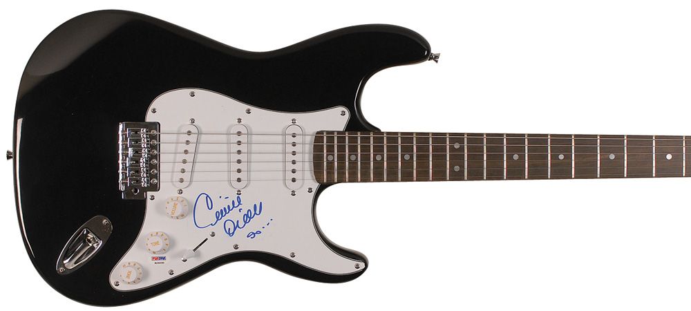 Black-bodied Stedman Pro ‘stratocaster-style’ electric guitar, signed on the white pickguard in blue felt tip. In fine condition, with a PSA/DNA authentication label affixed to pickguard. Accompanied by a certificate of authenticity from PSA/DNA. Oversized.