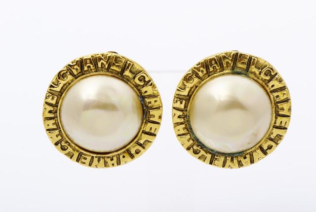 Celine Gold-tone Metal Round Faux Pearl Logo Clip-on Earrings Earrings. Brand: Celine, Style: Gold-tone Metal Round Faux Pearl Logo Clip-on Earrings, Type: Earrings, Exterior color: Gold, Exterior material: Metal, Width: 0.5", Height: 0.33". Item is sold