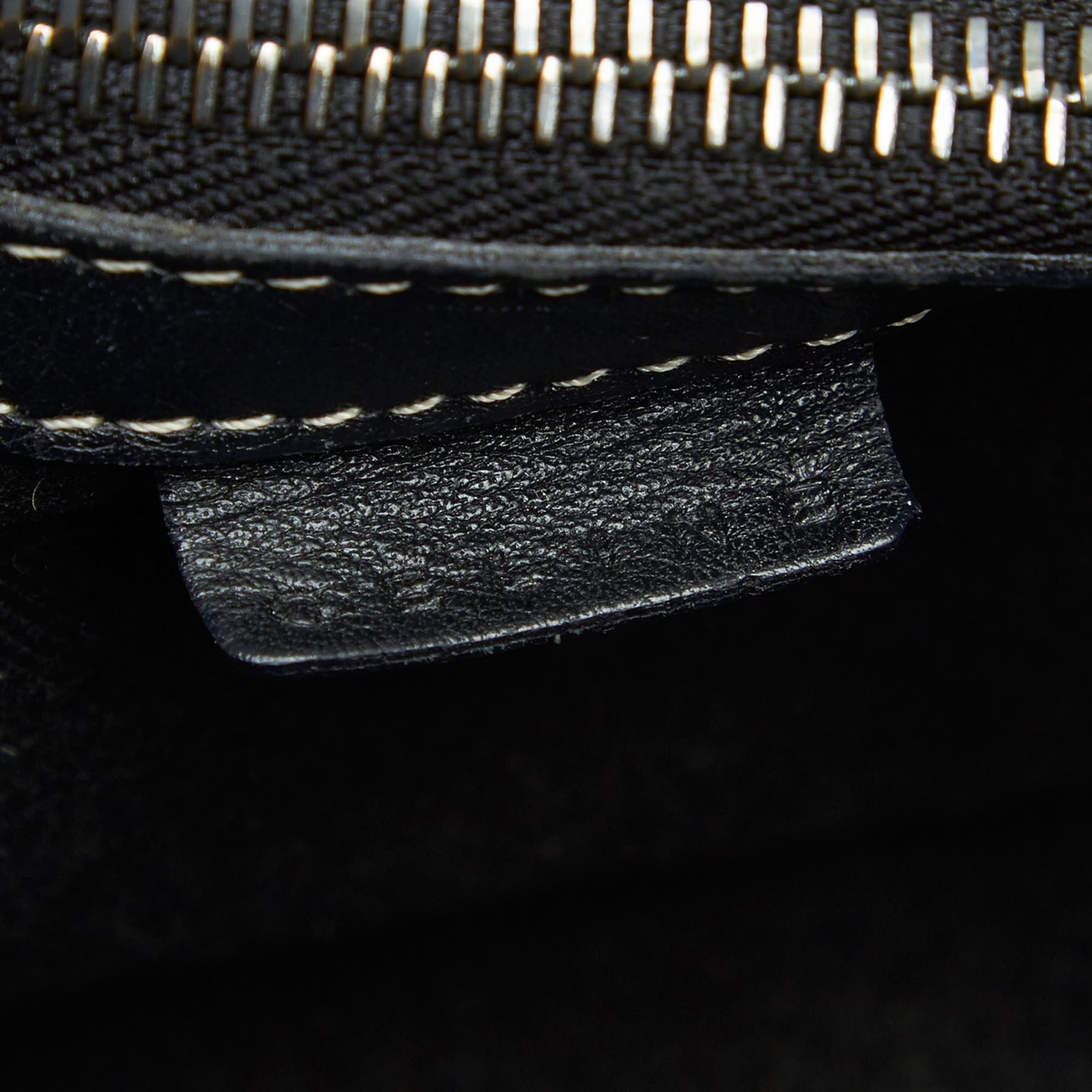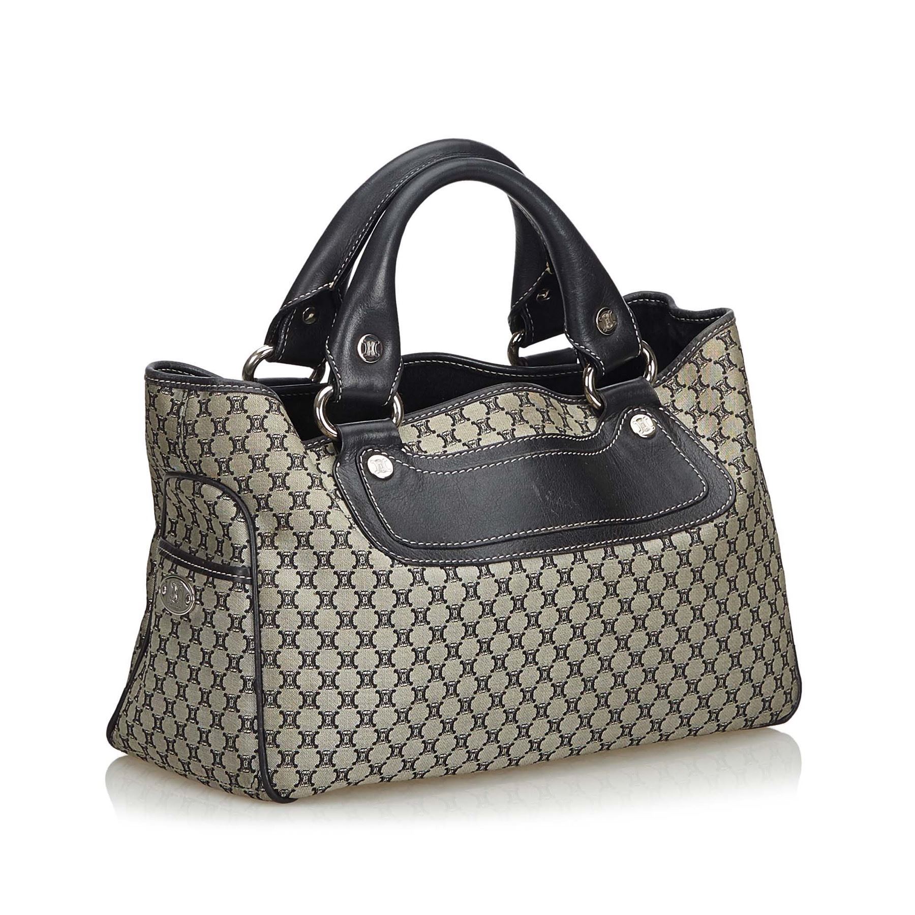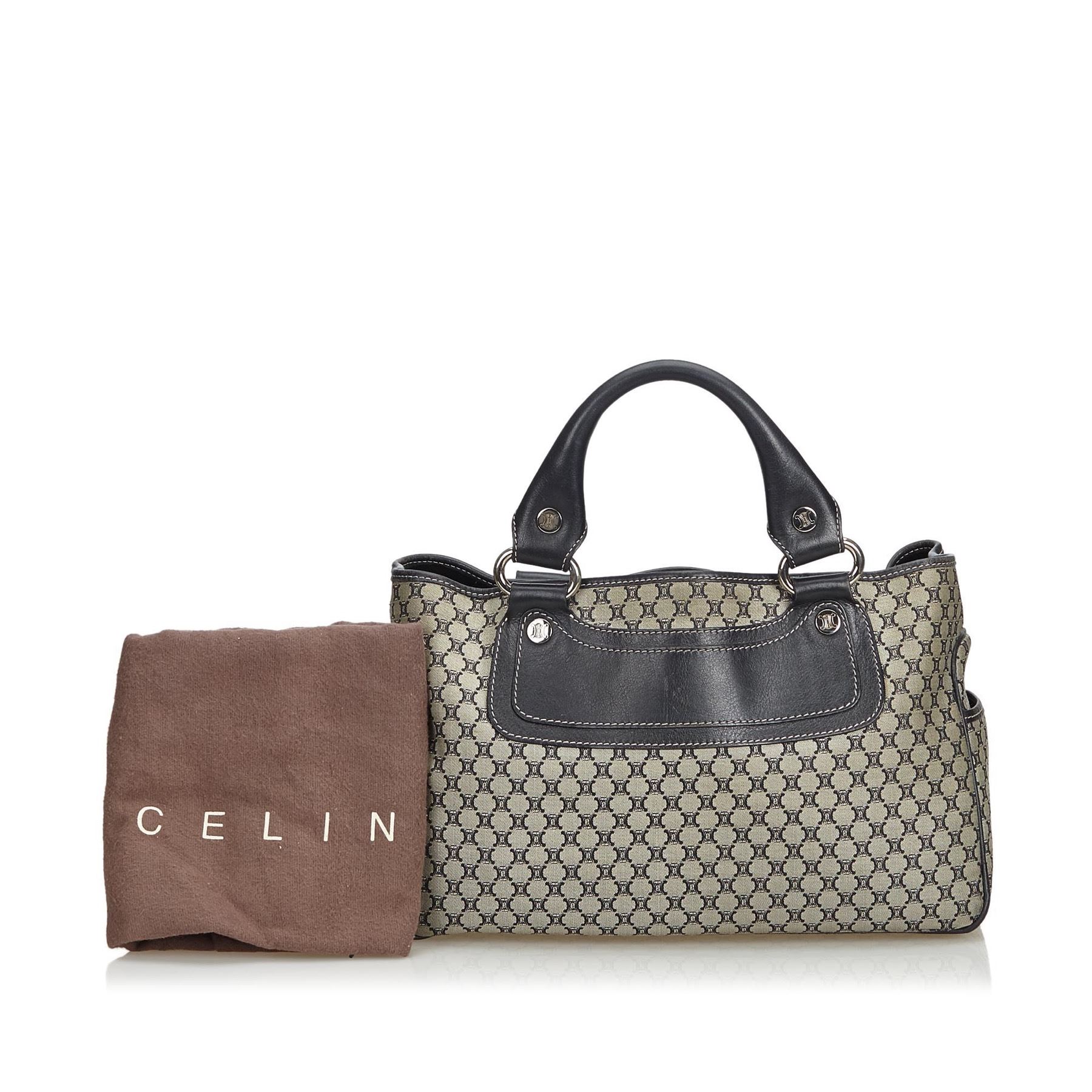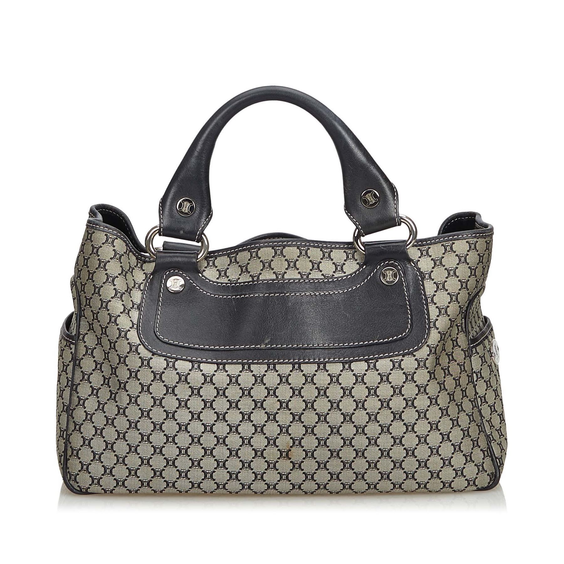 The Boogie features a canvas body, a top zip closure, rolled handles, exterior side pockets, and an interior slip pocket. Fabric x Canvas x Leather x Others Gray x Black Exterior corners is stained with transfer of color and worn. Interior lining is stained with transfer of color. Size: 19 x 31 x 13 Card: NO Made in: France