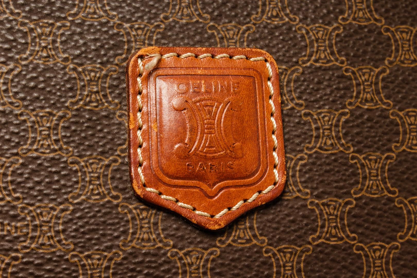 One Celine Macadam Men Clutch. Item is sold AS-IS. All available information is listed in the description and shown in the photo. Celine Macadam men clutch with contrasting trim, zipper closure, one exterior zip pocket, one interior zip pocket, and gold-toned hardware.
