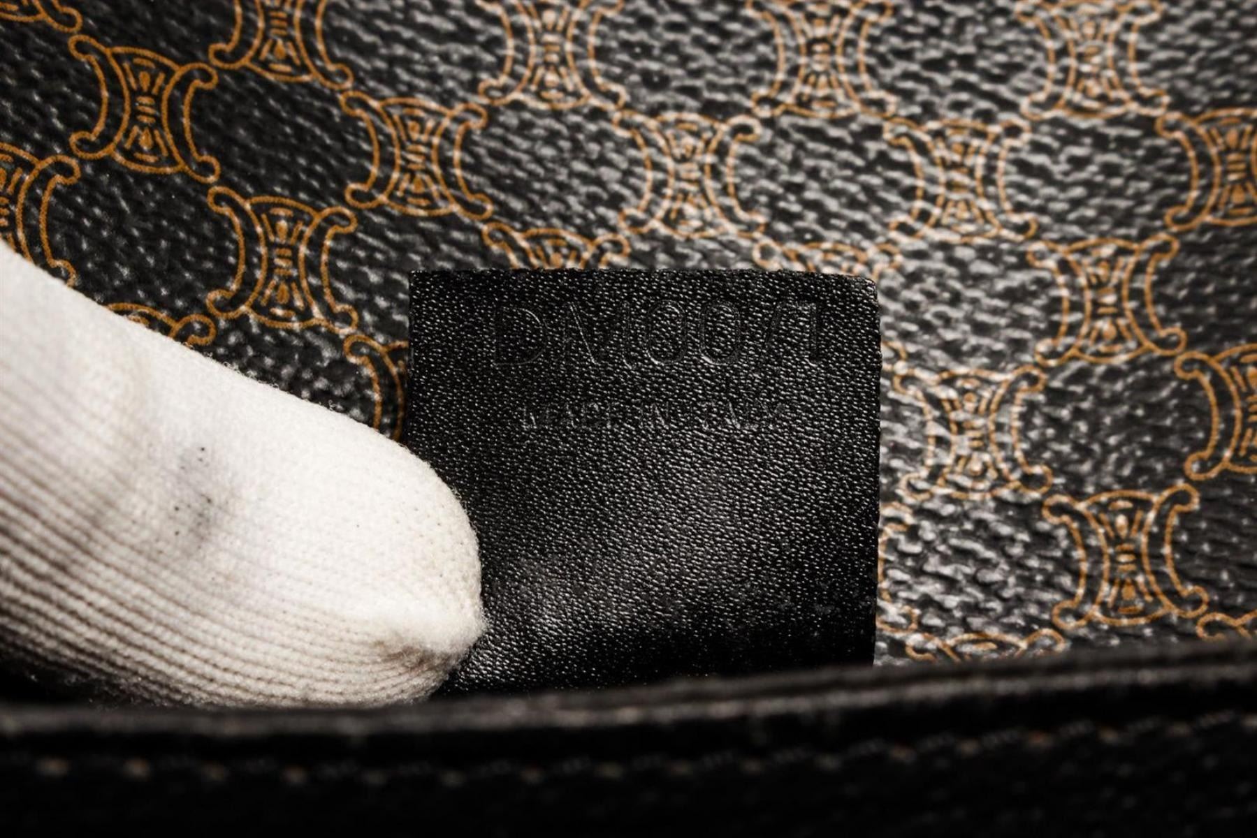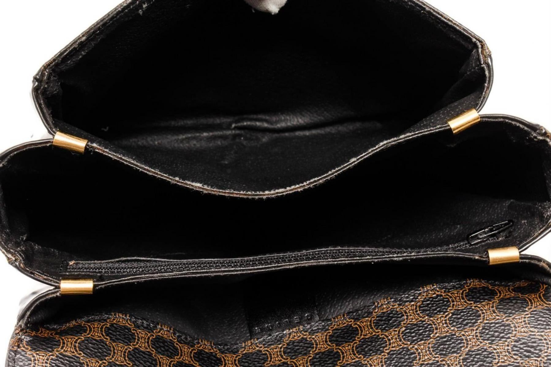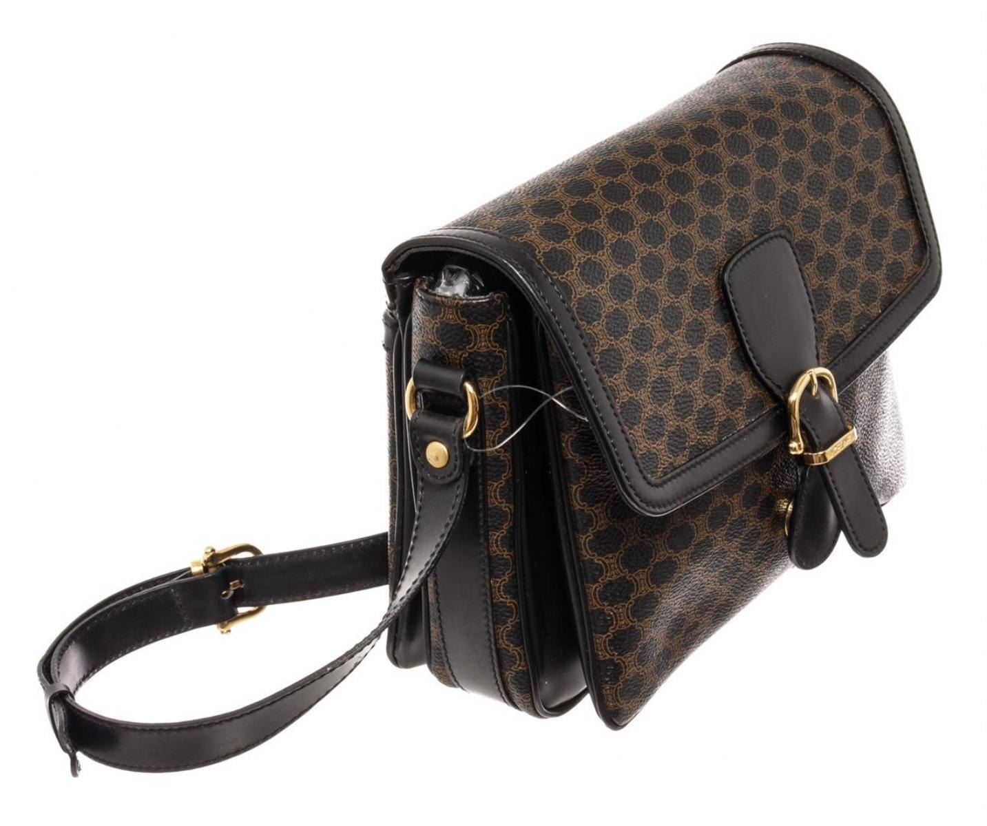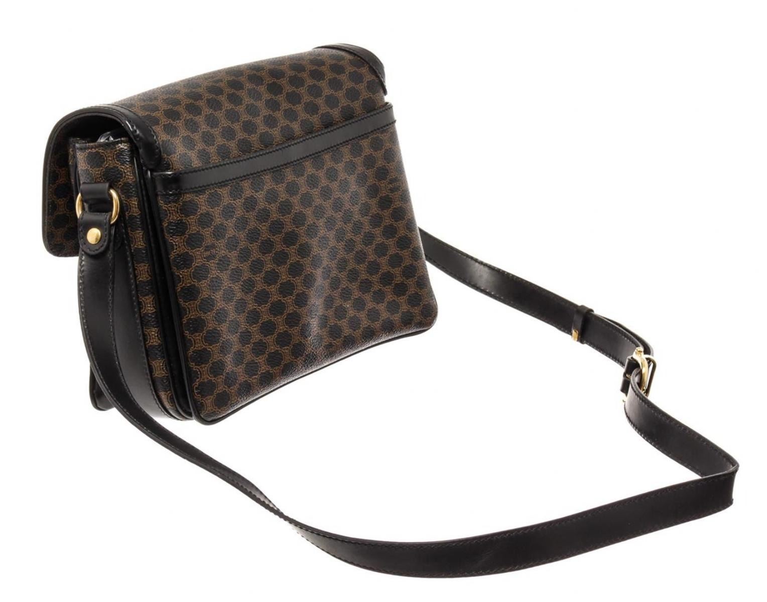 Black leather Macadam pattern Celine shoulder bag with gold-tone hardware, trim leather, interior zip pocket, shoulder strap and magnetic closure.