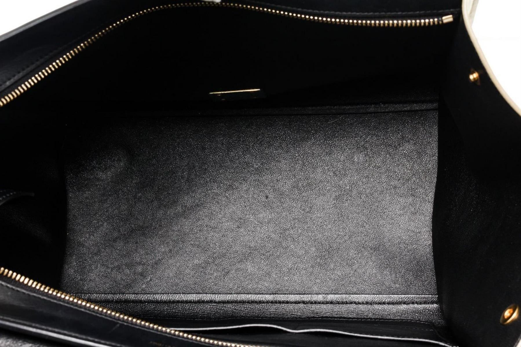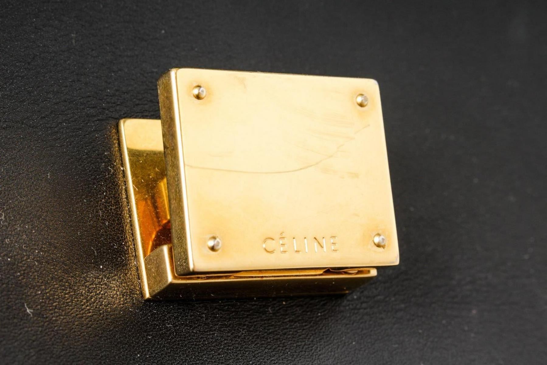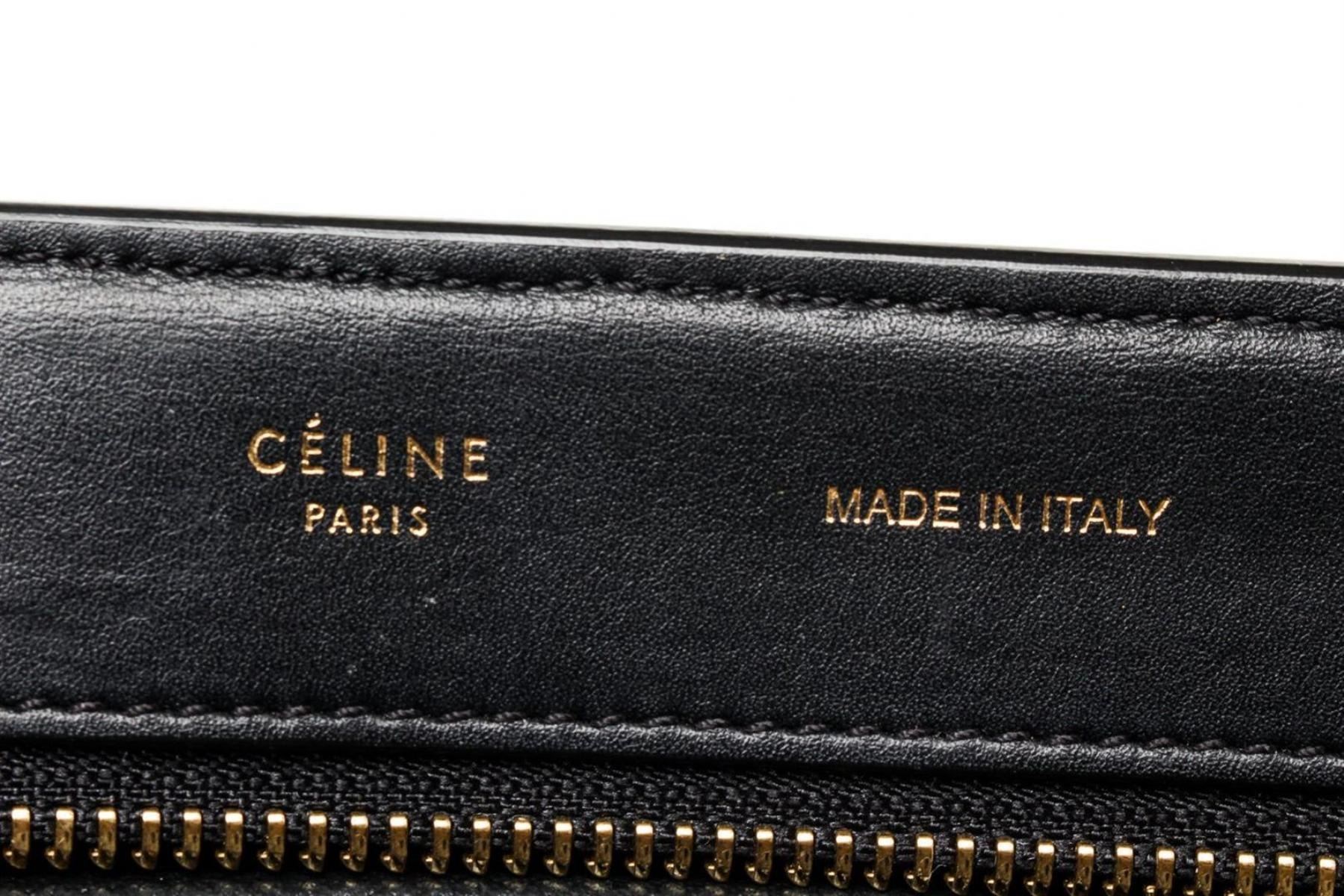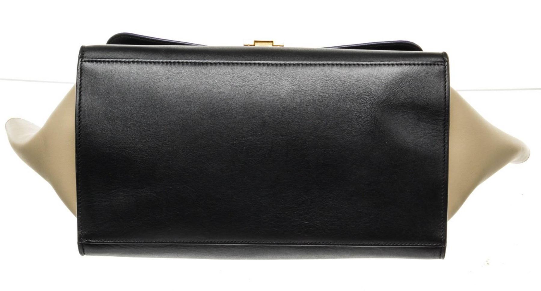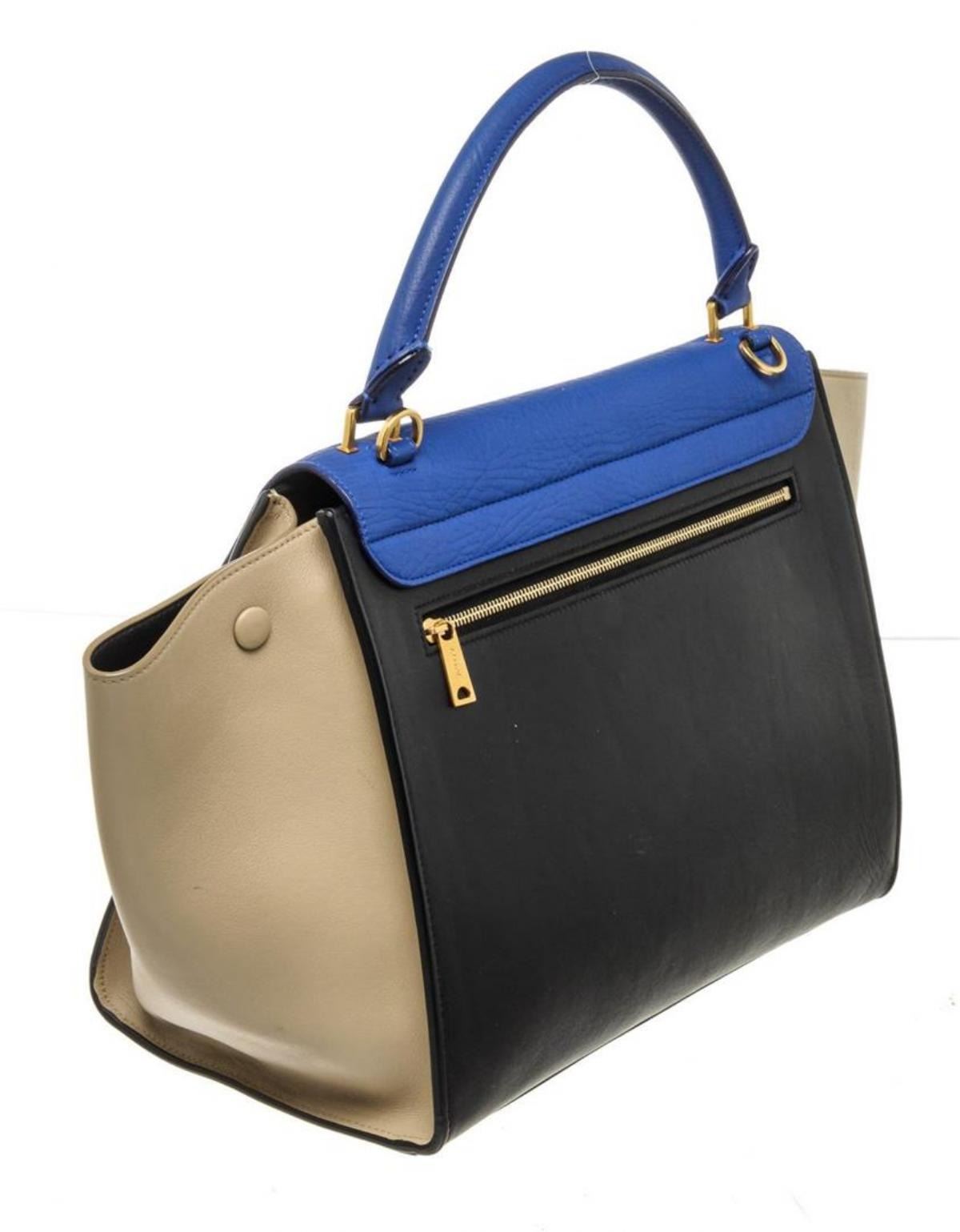 Celine Multicolor Leather Calfskin Suede Trapeze Handbag with leather, gold-tone hardware, interior slip pockets, top handle and zipper closure.