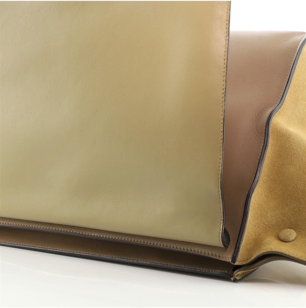 Celine Trapeze Bag Leather Large Black, Multicolor, Neutral Condition Details: Creasing on exterior, scuffs on exterior, handle, underneath flap, and in interior, cracking and splitting on side opening wax edges. Creasing underneath flap, small indent