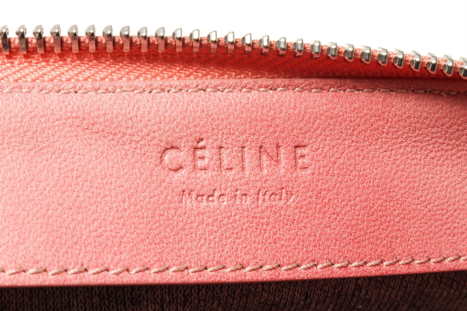 Celine Trio Ombre Leather Small Crossbody Bag. All available information is listed in the description and shown in the photos. Celine Trio Ombre Leather Small Crossbody Bag with adjustable shoulder strap, three zipper closure, silver tone hardware, jersey grey lining. Height 6", Width 8.5", Depth 2", Strap Drop 18-24" / 15.24 x 21.59 x 5.08CM