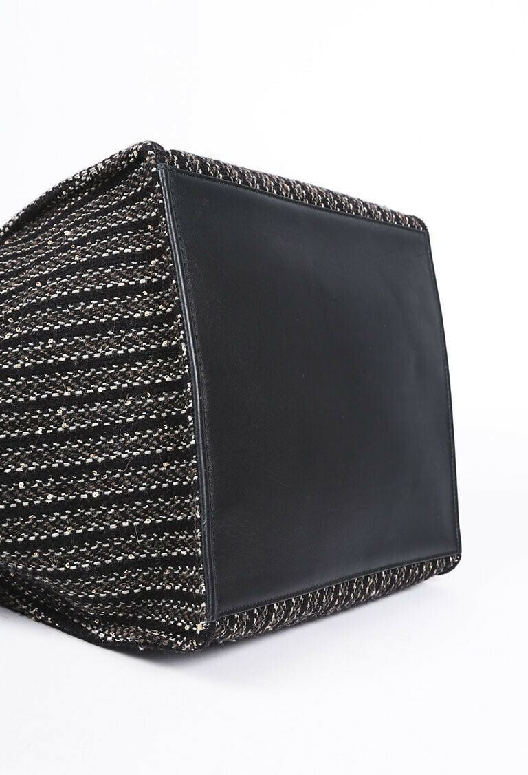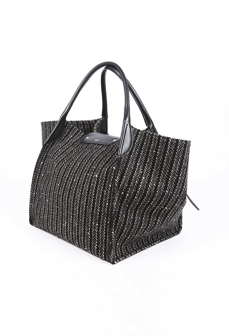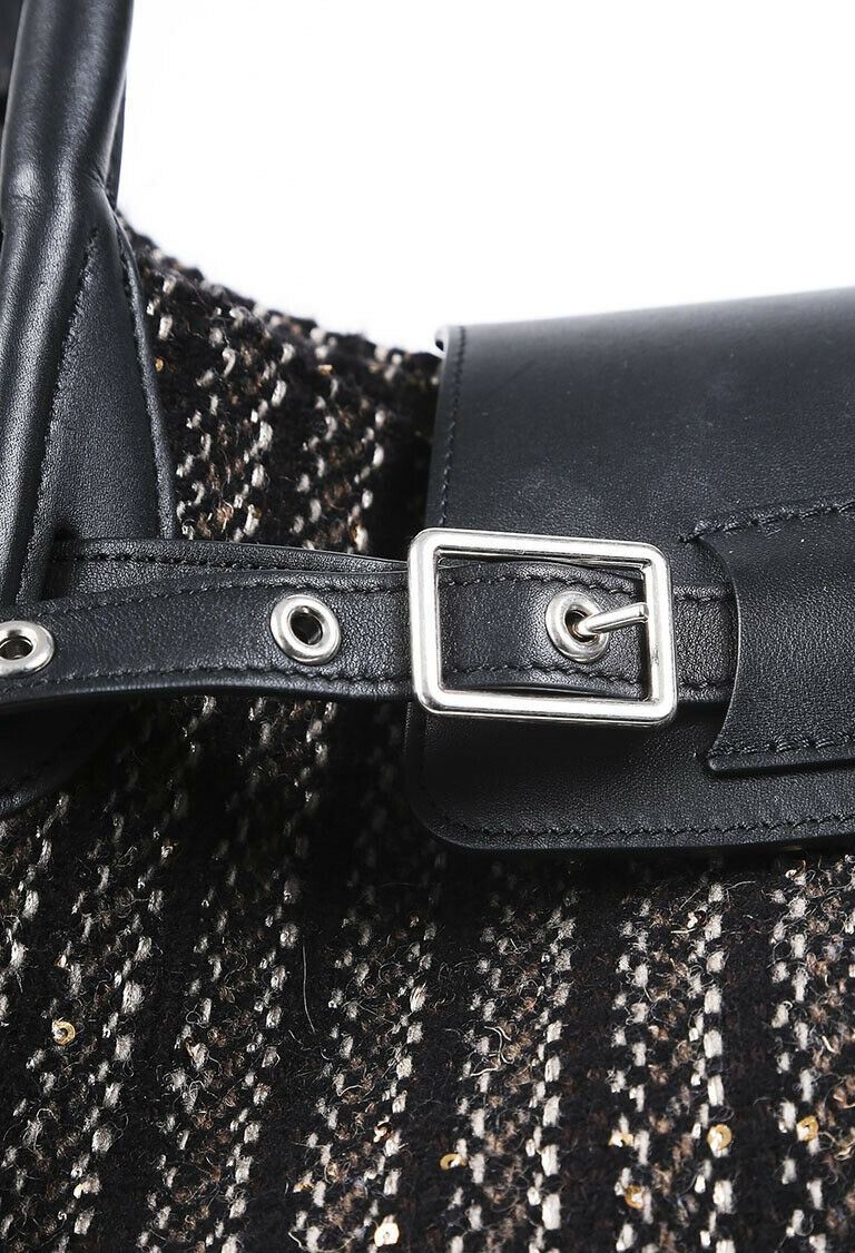 Description: Circa 2019. Celine medium Big Bag is crafted from tweed and features silver tone hardware, dual leather handles, buckled leather belt strap, and an unlined interior with a zip pocket.