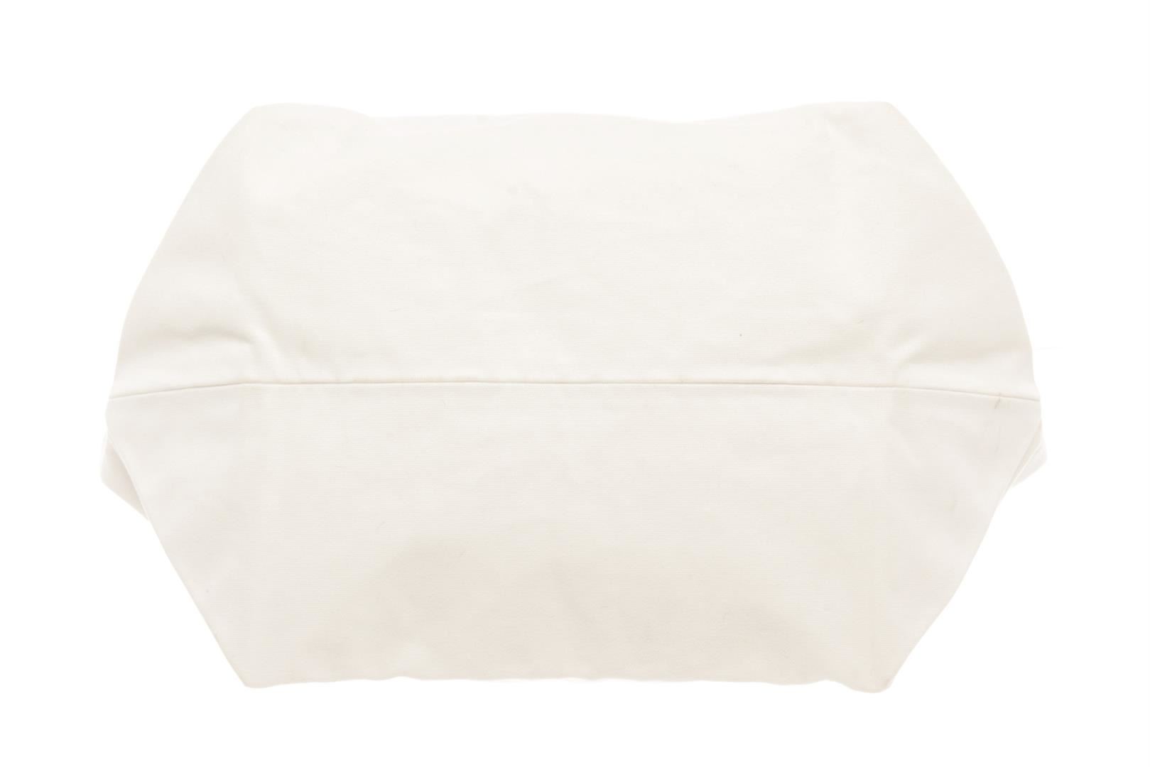 Celine White Canvas with Leather Medium Logo Tote Bag. All available information is listed in the description and shown in the photos. Celine White Canvas with Leather Medium Logo Tote Bag with black matte leather trim and tall flat black leather shoulder straps making this bag a beautifully simple design, The top is open to a white interior, open top. Height: 33.02 cm (13 in), Width: 36.83 cm (14.5 in), Depth: 30.48 cm (12 in)