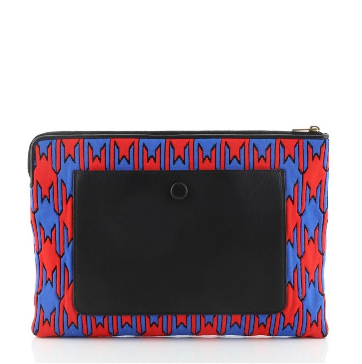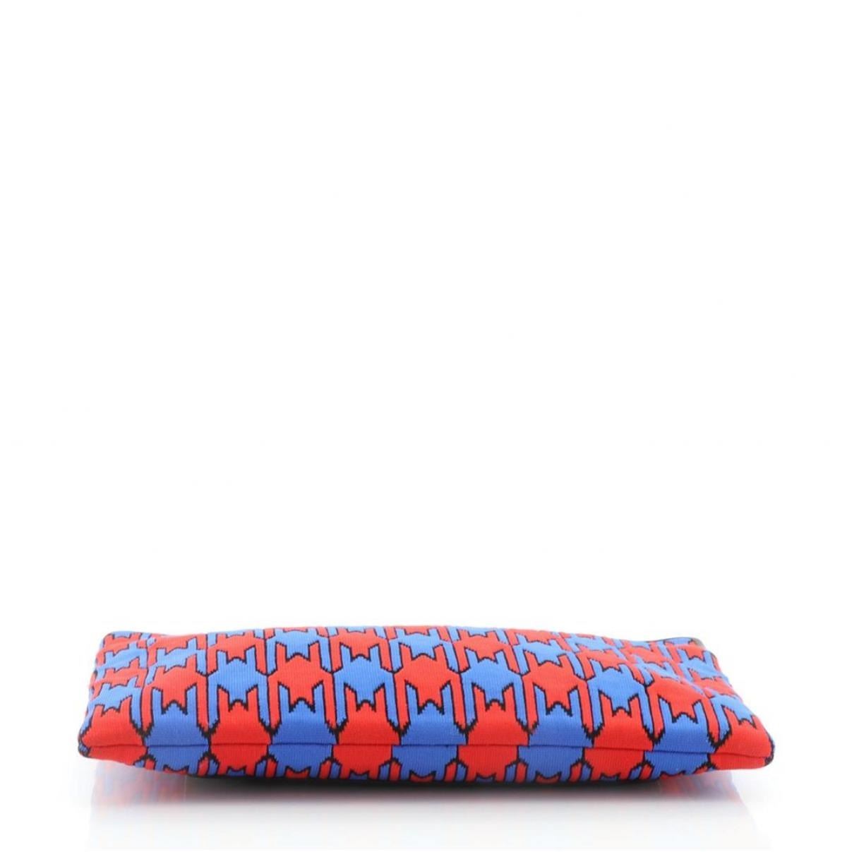 Celine Zip Pouch Houndstooth Fabric Blue, Multicolor, Red