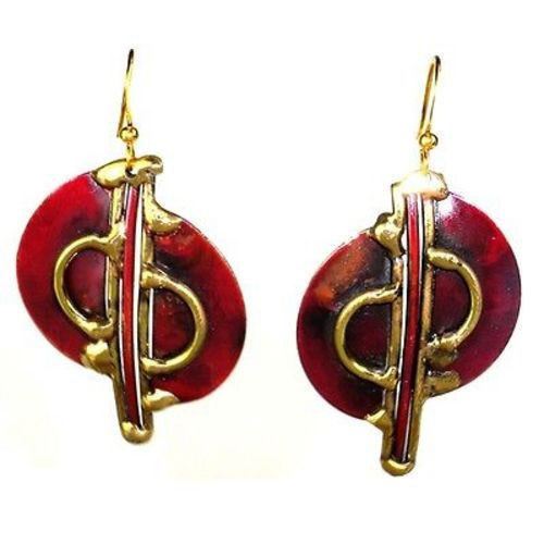 Cello Brass and Copper Earrings - Brass Images (E) **|**|** Handcrafted by South African artisans #H-073cu-232154