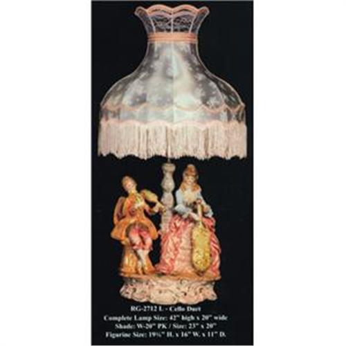 Capodimonte Porcelain "Cello Duet" lamp with shade Satisfaction Guaranteed All our capodimonte pieces are 100% authentic, made with the best craftmanship in Italy. Capodimonte is more than a century Italian style of the finest porcelain once reserved for kings and queens. The style became popular when the royal family in Italy fell in love with the beauty of Capodimonte arts. The selection you see is made by artisans, according to the same tradition dating back to the 18th Century.<BR>Free Shipping in the continental US