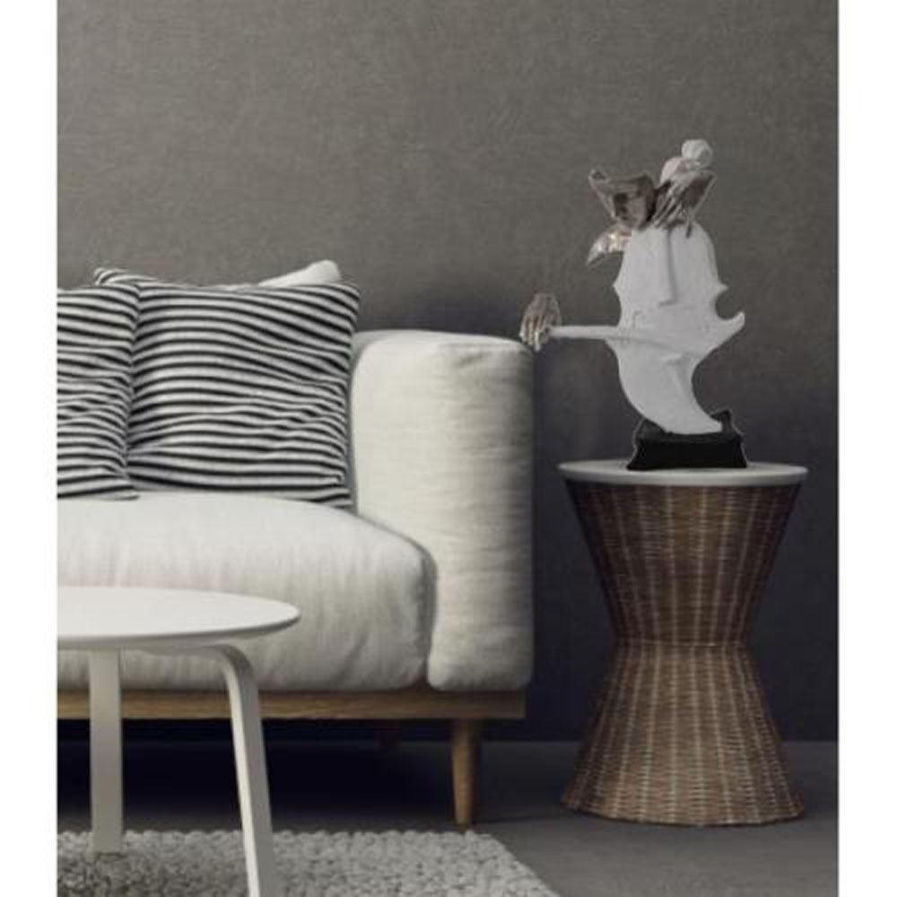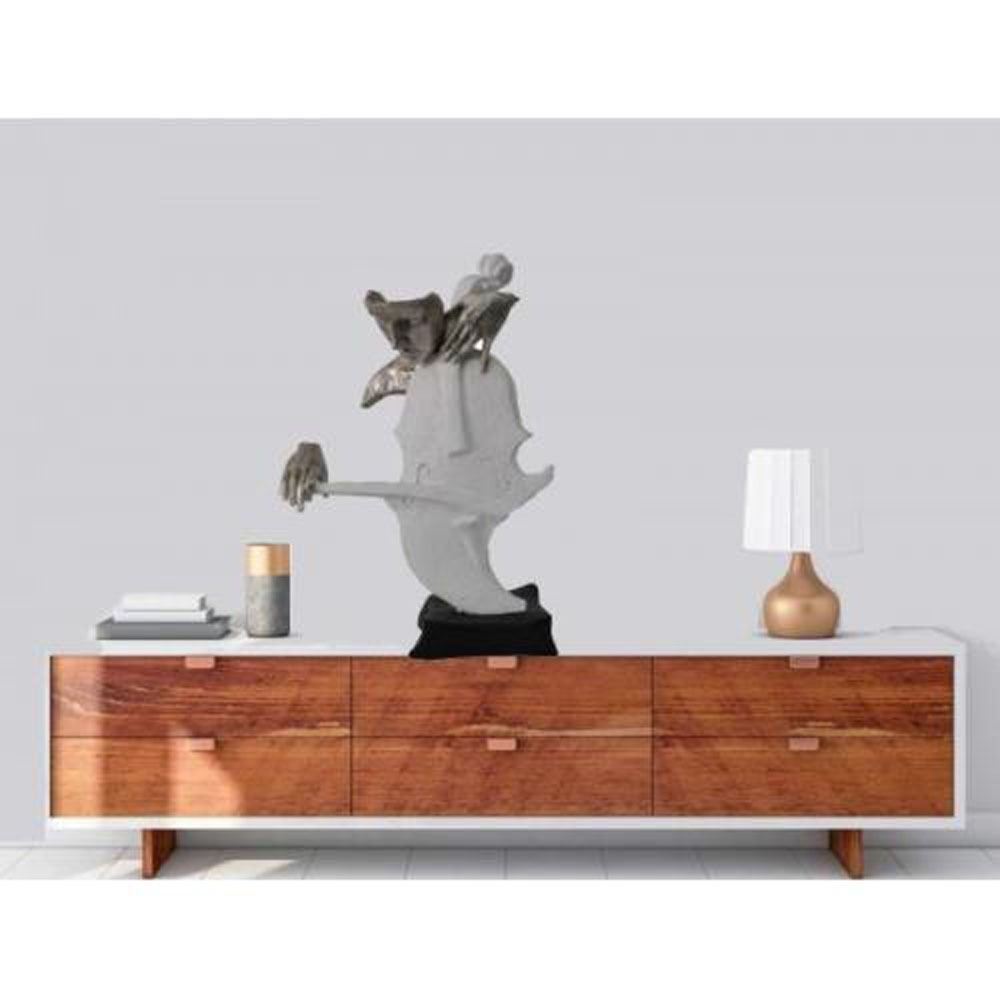 Cold Cast Bronze Sculpture: A modern method of casting sculptures in which the casting material is a resin mixed with real powdered bronze. The finished sculpture has a surface which looks very similar to a traditionally cast bronze although it tends to be much lighter. It is a preferred method for achieving high quality of detail and finish and also to keep the weight down. Height: 13 X Width: 9 inches. Weight: 10 LBS. Color: Silver and White.