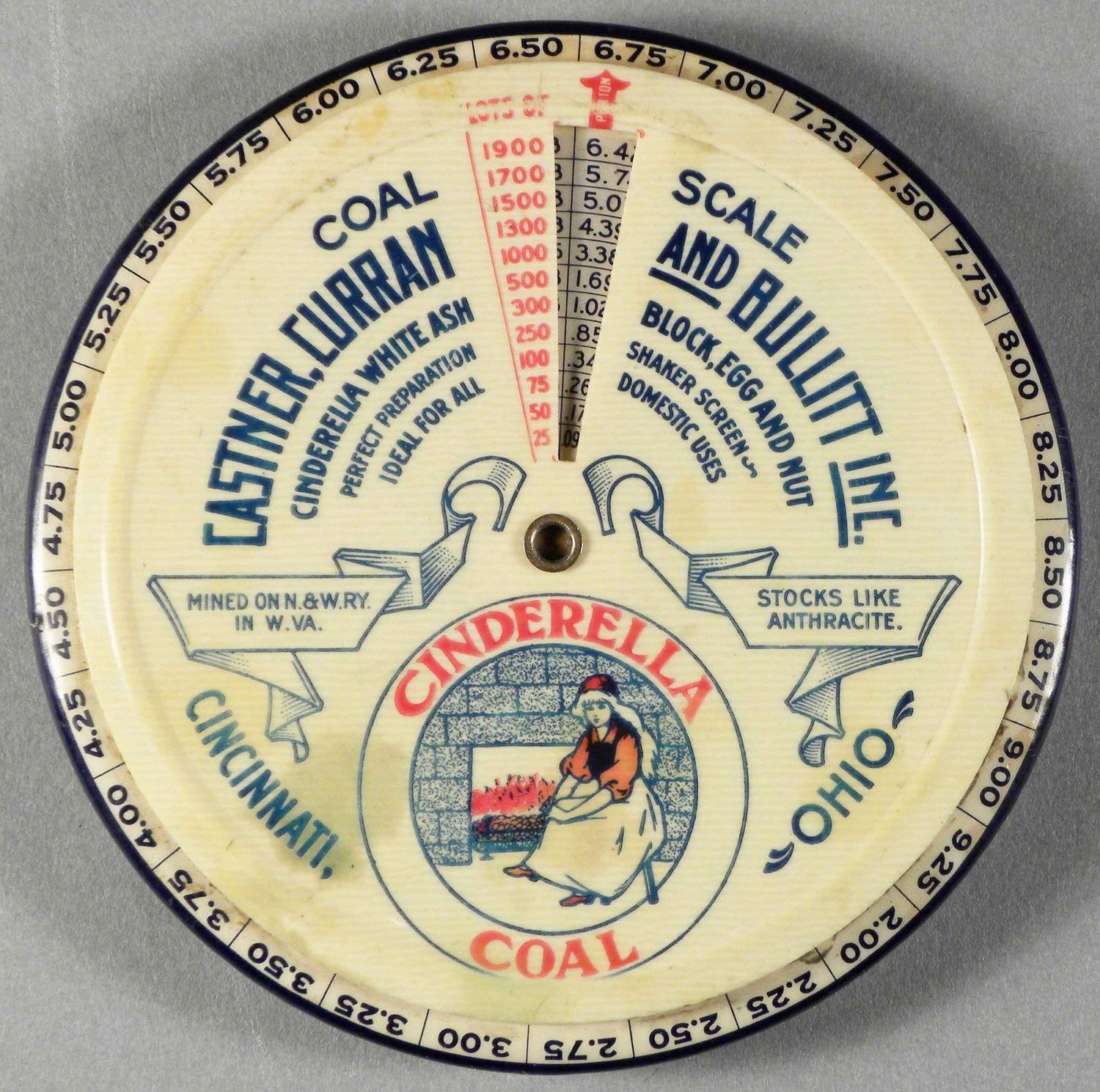 Celluloid Advertising Paper Weight and Coal Price Calculator. Caster, Curran & Bullitt Inc. Pocahontas Smokeless Coal. Depicts Pocahontas on front. Excellent condition. 4 inch diameter. Starting bid $50