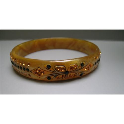 </font></strong>Delightful Deco Pearlized Amber & Black Rhinestone Bangle in