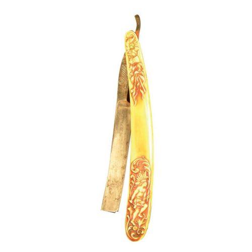 Celluloid handled straight razor with Native American Indian motif, by Clauss. Excellent condition.