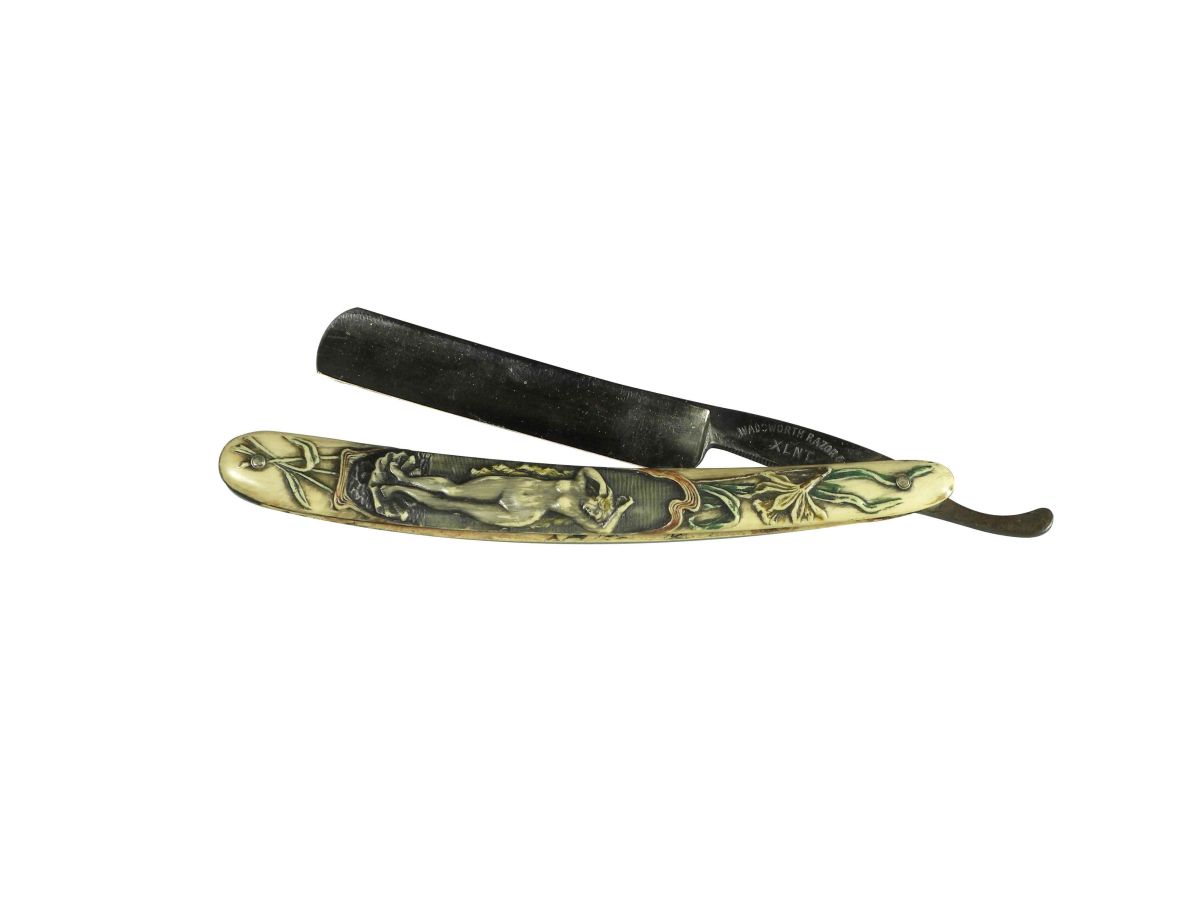 Celluloid Handled Straight Razor. Wadsworth Razor Company, Germany. Depicting nude. Good original condition. 6 1/4 inches closed.