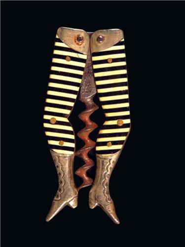 Celluloid Ladies Legs Cork Screw, black stripes marked SRD. Some rust to screw otherwise very good condition. 5 1/4 inches open.