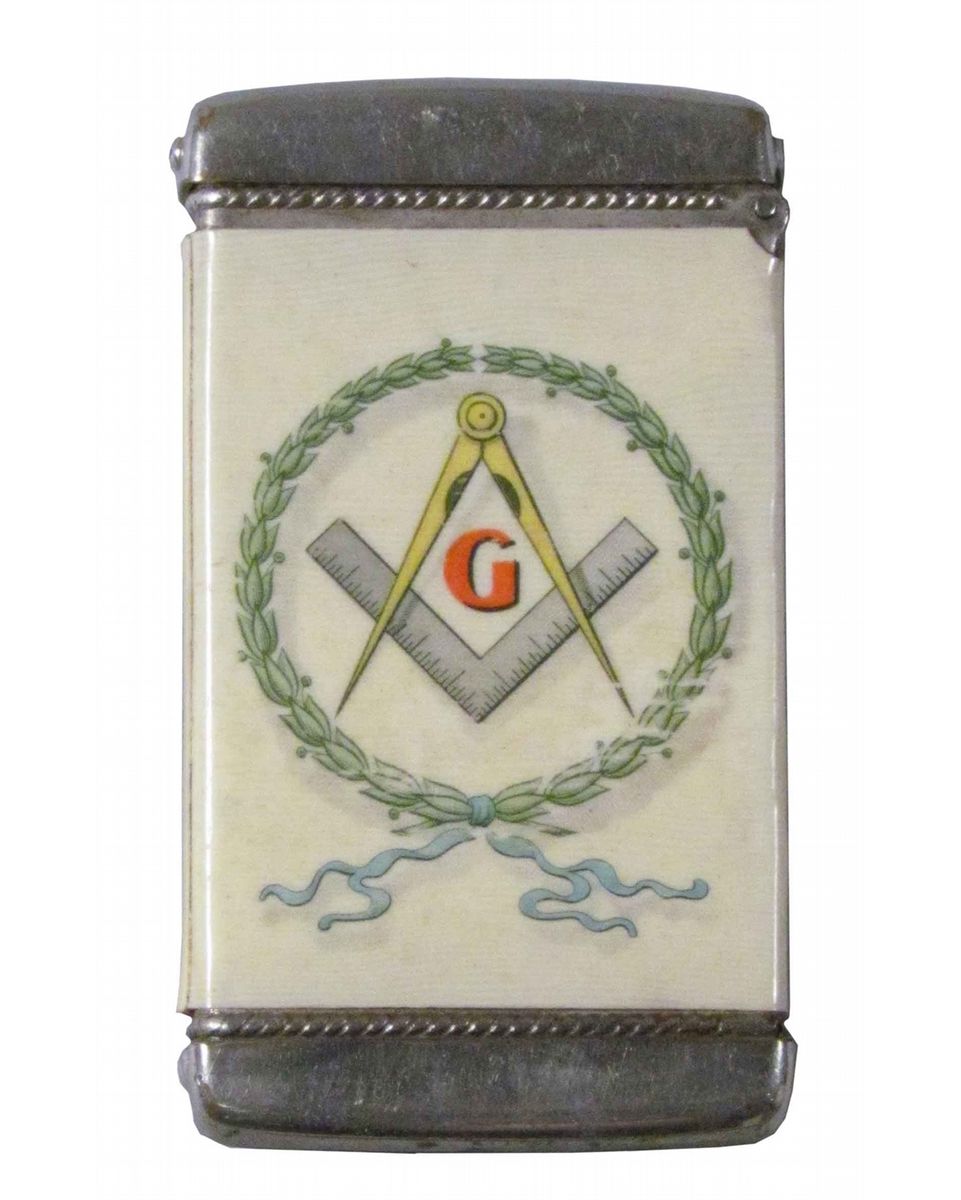 Celluloid Match Safe for Mason Elmer H. Gray. Lodge #246 insignia completed with ruler and protractor. Very good condition. 1 1/2 X 2 3/4 inches.