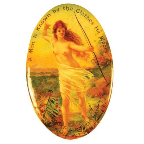 Celluloid Pocket Mirror for Brooks and Rosenthal Modern Tailors, Baltimore Street. Depicting a nude shooting a bow and arrow. Near mint condition. 2 X 3 inches.