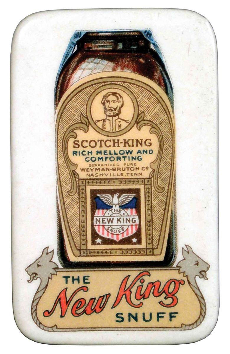Celluloid Pocket Mirror for the New King Snuff. Excellent condition. 1 3/4 X 2 3/4 inches. Start Price $30