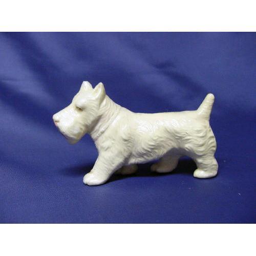 Scotty Terrier made in Japan celluloid figurine in very, very good condition. There is wear on the paint of the mouth/tongue, nose and eyes. Body is in very good condition, with no cracks or breaks. The seam that runs along the back of the dog has 2 separations as shown in the photo.