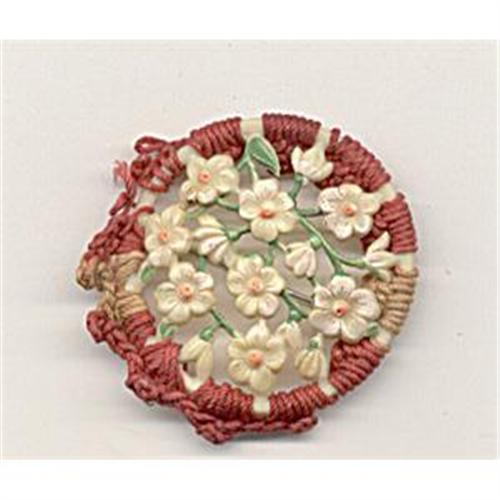 <tr><td>Title:Celluloid String Circle Floral Brooch Pin</td></tr>