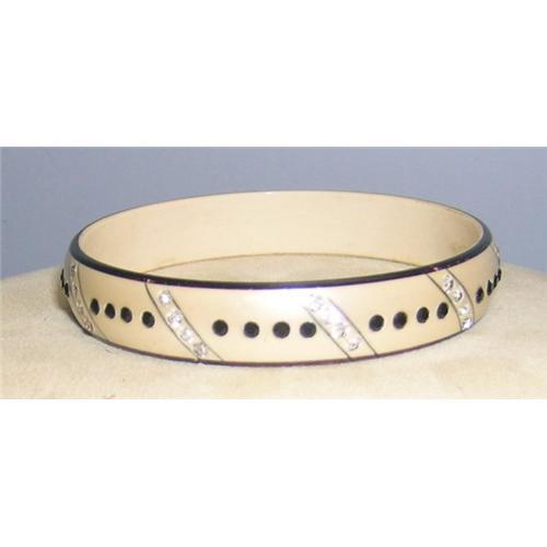 <tr><td>Title:Celluloid Vintage Deco Cream Bangle with Black</td></tr>