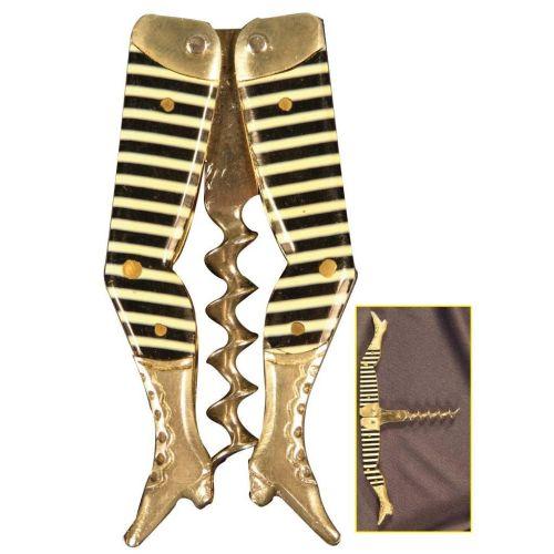 Celluloid and Steel Ladies Leg Corkscrew. Black and White Striped. Excellent condition. 2 1/2 inches.