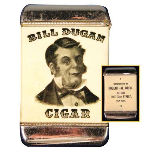 Celluloid match safe for Bill Dugan Cigars. Mfg. by Rosenthal Bros. NY. Excellent condition. 1 1/2 X 2 1/4 inches.