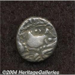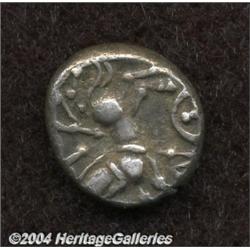 <B>Celtic Britain. Early Uninscribed L. 'Whaddon Chase' Type.</B></I> Ca. mid-1st century B.C. AV stater (18 mm, 5.91 g). Stylized head of Apollo right / Horse galloping right; winged object and pellet above, pellet in ring below. Hobbs 295ff; Van Arsdell 1476-5; Spink 31. XF // Lot also includes an uncertain British Celtic AR unit. Head left / Horse left. Toned Near XF. 2 coins <BR><BR><B>Important notice:</B> Heritage usually auctions material at the rate of 200-250 lots per hour. On some occasions eBay Live bid software or the Internet may not be able to keep up with the pace of the auction. We recommend placing a realistic absentee bid now as insurance to avoid disappointment. Occasionally the auctioneer may eliminate or reject an eBay Live bid, and the auctioneer may also reopen a lot after the close of the eBay live bidding (usually because we missed an audience bid), and may reject your bid even if it shows you as the winning bidder. By bidding via eBay Live, you agree that Heritage may award the lot to another bidder at its sole discretion under the circumstances described above or any other reasonable circumstances. Since eBay bids are not shown to us until we open the lot on the floor, we treat those bids just like floor bids. In most cases the floor responds before the eBay bid is presented to us, due to Internet lag time, so for consistency we have made it a policy that floor bids are always considered first over tie eBay live bids. Also please note that all Heritage lots purchased through eBay Live carry a 20% Buyer's Premium. Please make sure you read the Terms and Conditions before you bid.