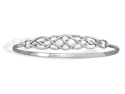 3mm wide bangle features 7x42mm celtic design and hook closure. .925 Sterling Silver