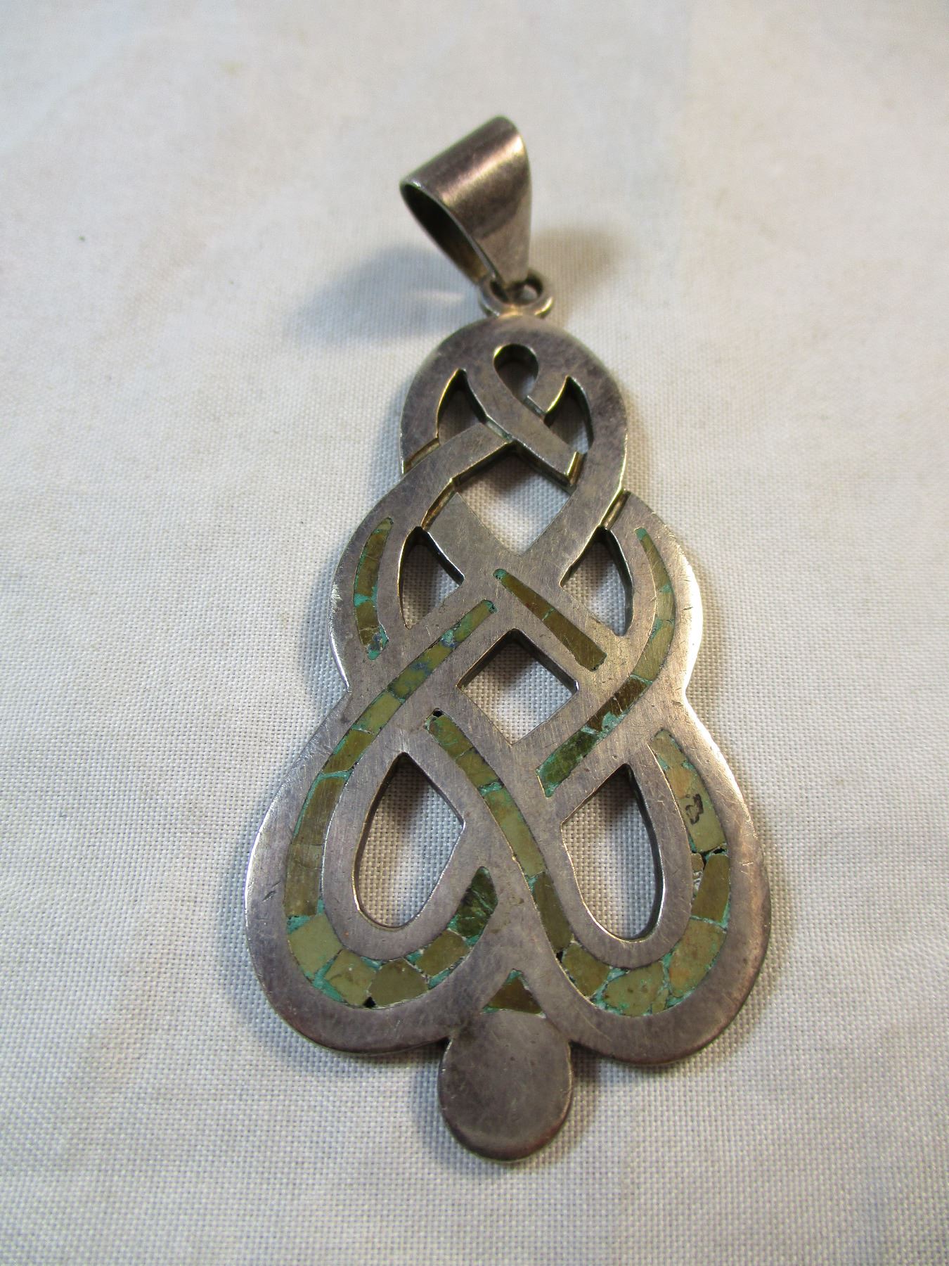 "Vintage Celtic knot work style 970 Silver Pendant with Inlay.