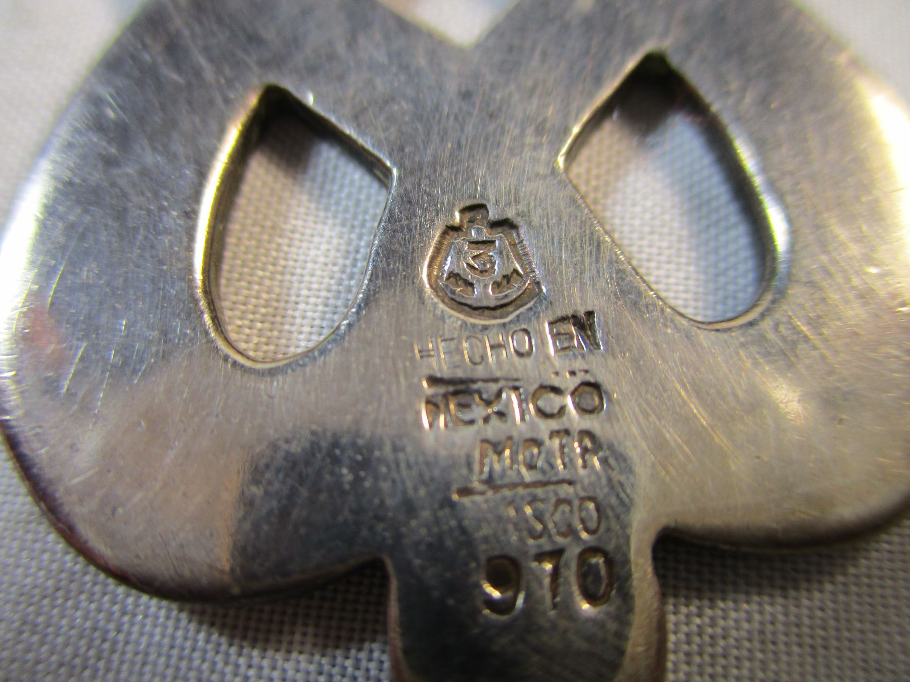Back marked Hecho En Mexico Mota 4500 970. 970 Sterling Stamp was used in the 1930's to 1940's before using the 925 Stamp in 1950's.
