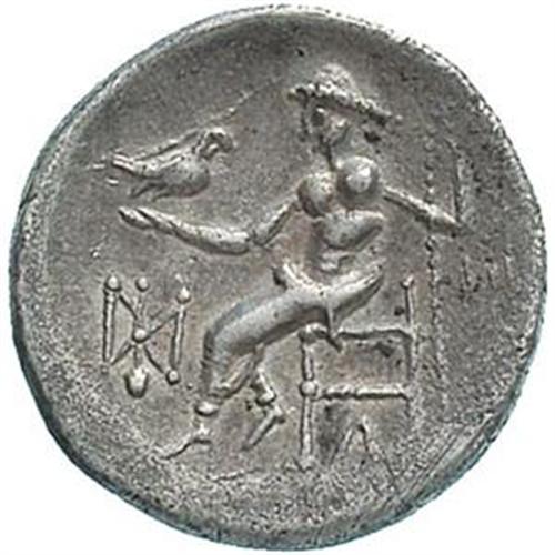 Greek Coins. I Celti. Danubio. Drachm, I sec. a.C. D/ Testa di Eracle a destra. R/ Zeus seduto in trono a sinistra. Cfr. Gbl, OTA 574 e segg. (var.). gr. 3.41 AG. Bel BB+.